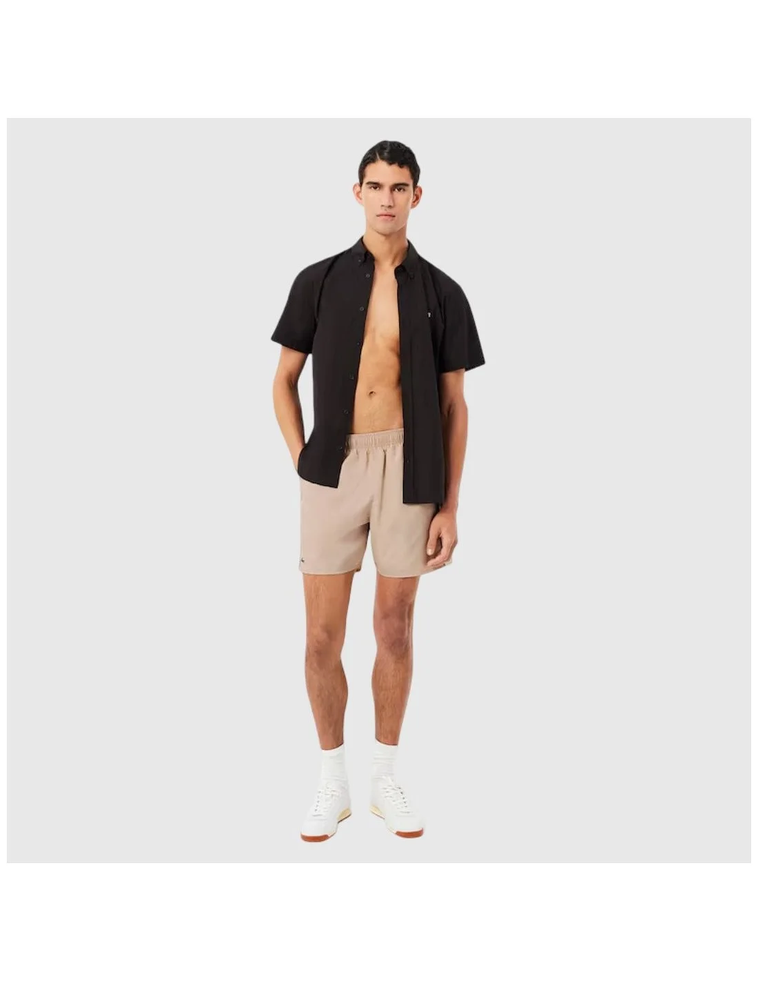 El bañador Lacoste para hombre combina funcionalidad y estilo en un diseño corto y ligero. Incorpora cintura elástica para un ajuste cómodo y paneles laterales contrastantes con ribete. El emblemático cocodrilo bordado añade un toque distintivo. Ideal para disfrutar de días de playa o piscina con un look moderno y práctico.