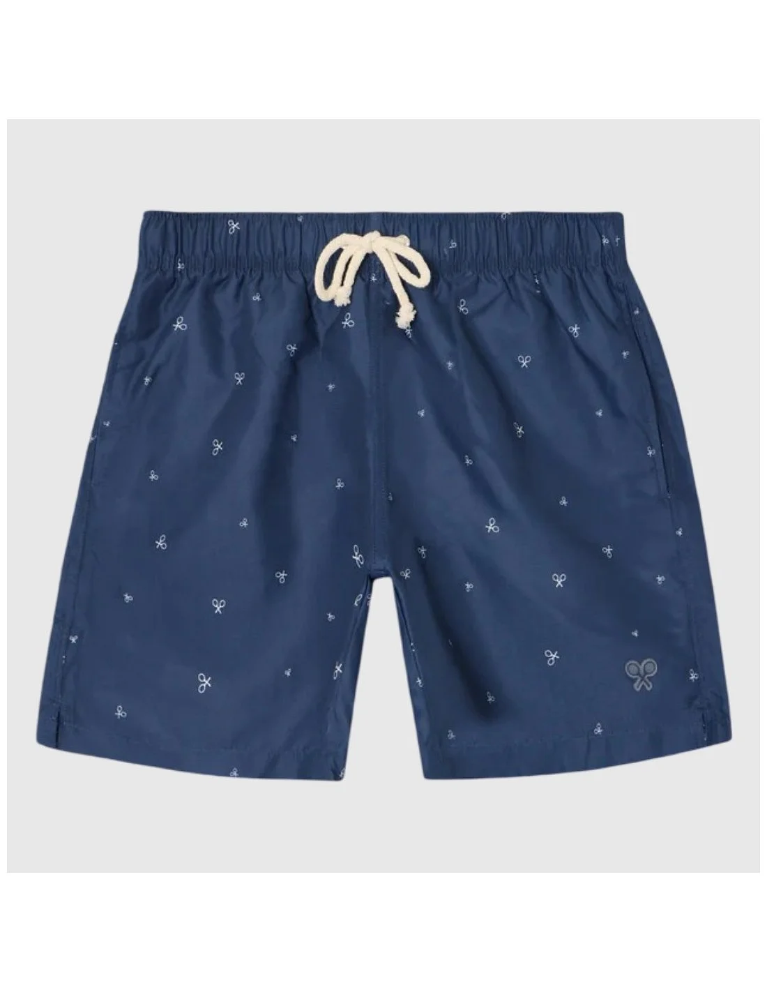 Bañador Silbon para hombre de estilo casual diseñado para actividades acuáticas y momentos de ocio. Presenta cintura elástica con cordón ajustable que permite un ajuste cómodo y seguro. Incorpora bolsillos laterales y un bolsillo trasero con solapa y etiqueta de la marca. El diseño incluye un estampado repetido con pequeños motivos gráficos y un discreto logotipo, aportando un toque distintivo y moderno.