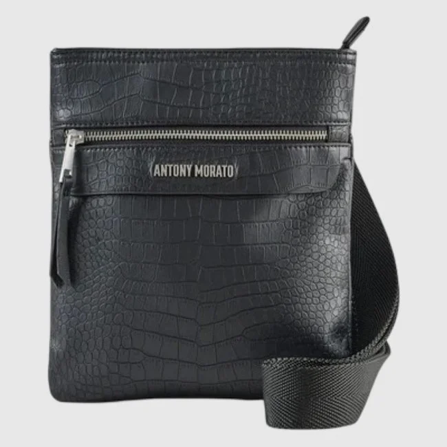 Bandolera Antony Morato con diseño compacto y acabado efecto grabado. Cuenta con cierre superior de cremallera, bolsillo frontal con cremallera metálica y logotipo aplicado en la parte delantera. Incorpora correa ajustable para un ajuste cómodo y práctico. Ideal para llevar tus esenciales con estilo en el día a día.