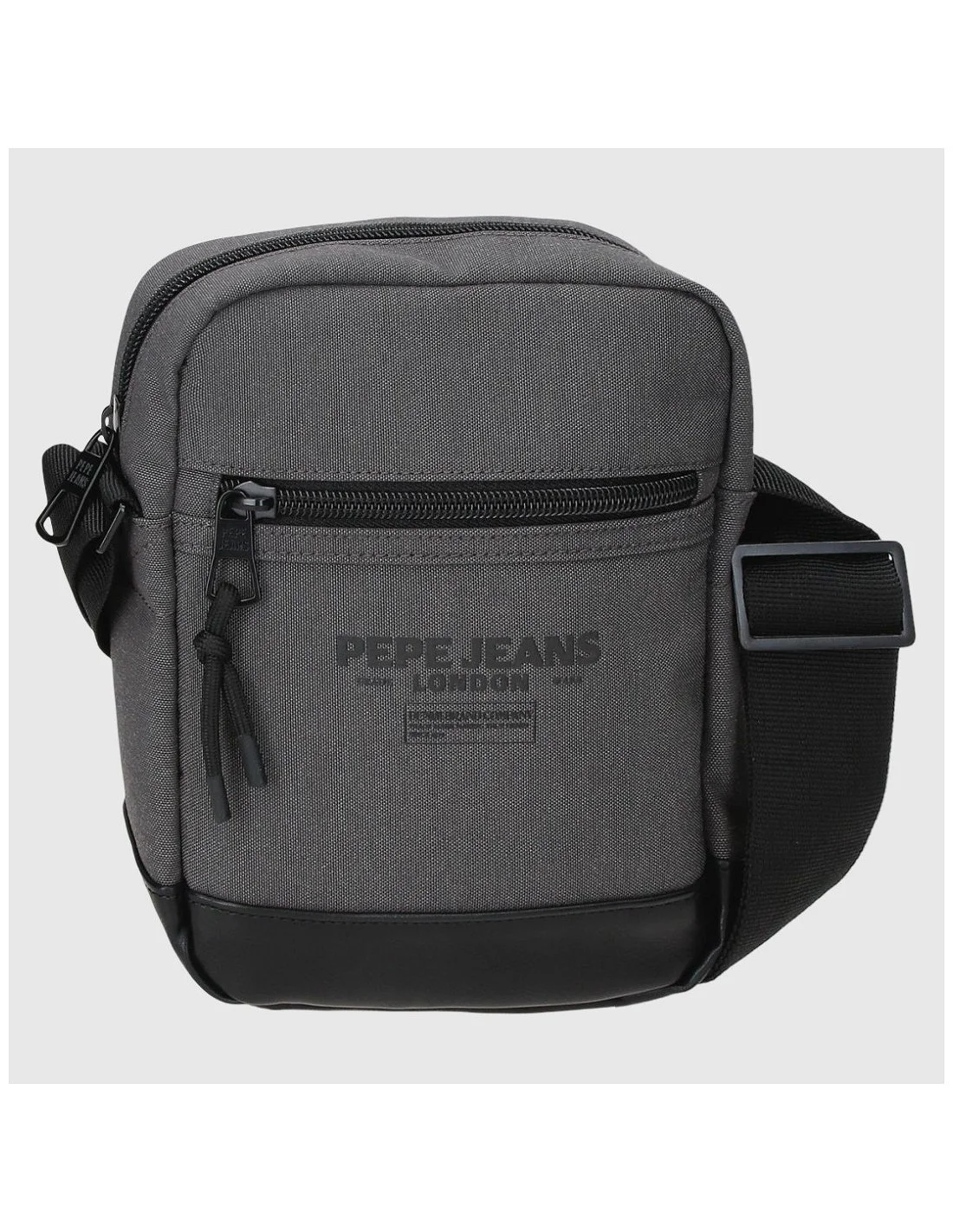 La bandolera de Pepe Jeans en gris oscuro ofrece un diseño funcional y urbano. Fabricado en poliéster resistente con base reforzada en negro, incluye compartimento principal, bolsillo frontal y trasero con cremallera, y correa ajustable. Ideal para el uso diario gracias a su formato compacto y práctico.