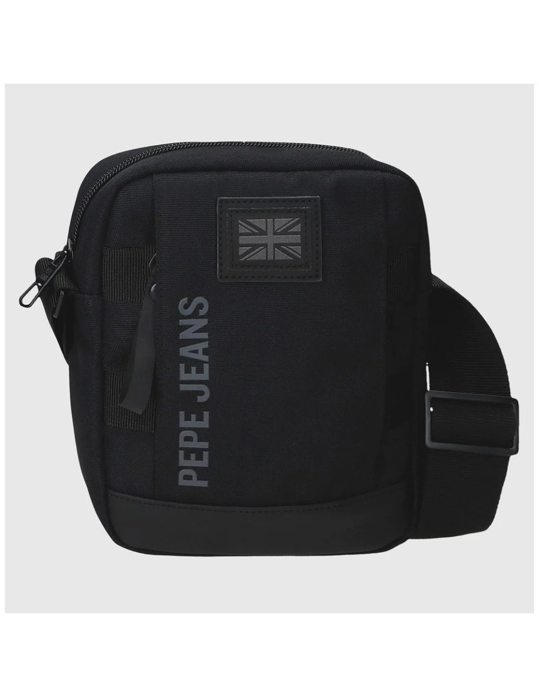 La bandolera de Pepe Jeans en color negro destaca por su diseño compacto y resistente. Fabricado en poliéster, incluye compartimento principal, bolsillo trasero con cremallera y correa ajustable. El logotipo vertical y el parche con la bandera aportan un estilo moderno y distintivo. Ideal para uso urbano diario.