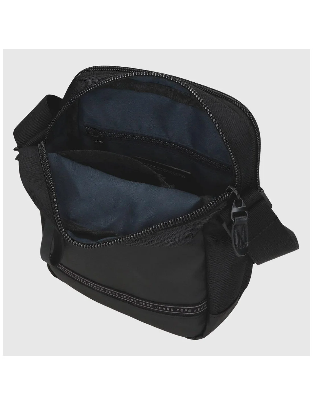 La bandolera de Pepe Jeans en color negro destaca por su diseño funcional y sobrio. Fabricado en poliéster resistente, cuenta con dos compartimentos principales, bolsillos exteriores con cremallera y un interior forrado con secciones organizadoras. Su correa ajustable permite un uso cómodo en entornos urbanos o viajes ligeros.