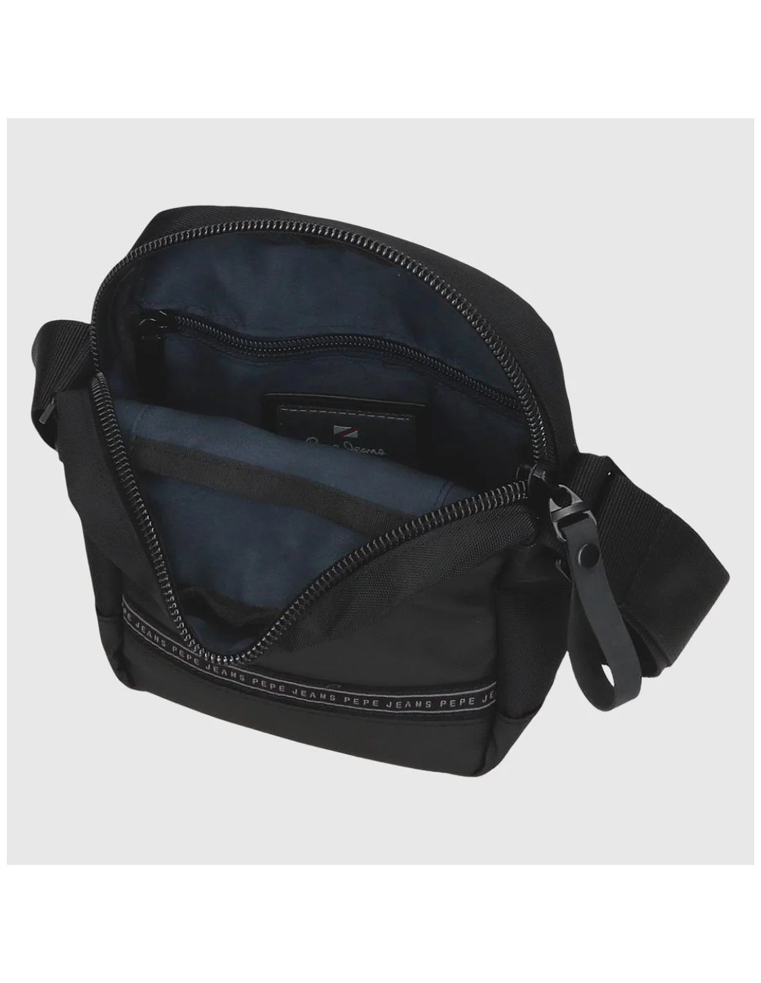 La bandolera de Pepe Jeans en color negro combina diseño compacto y funcionalidad urbana. Fabricado en poliéster resistente, cuenta con compartimento principal, bolsillo trasero con cremallera y correa ajustable. Detalles como el logotipo frontal y cinta decorativa añaden un toque distintivo. Ideal para el día a día.