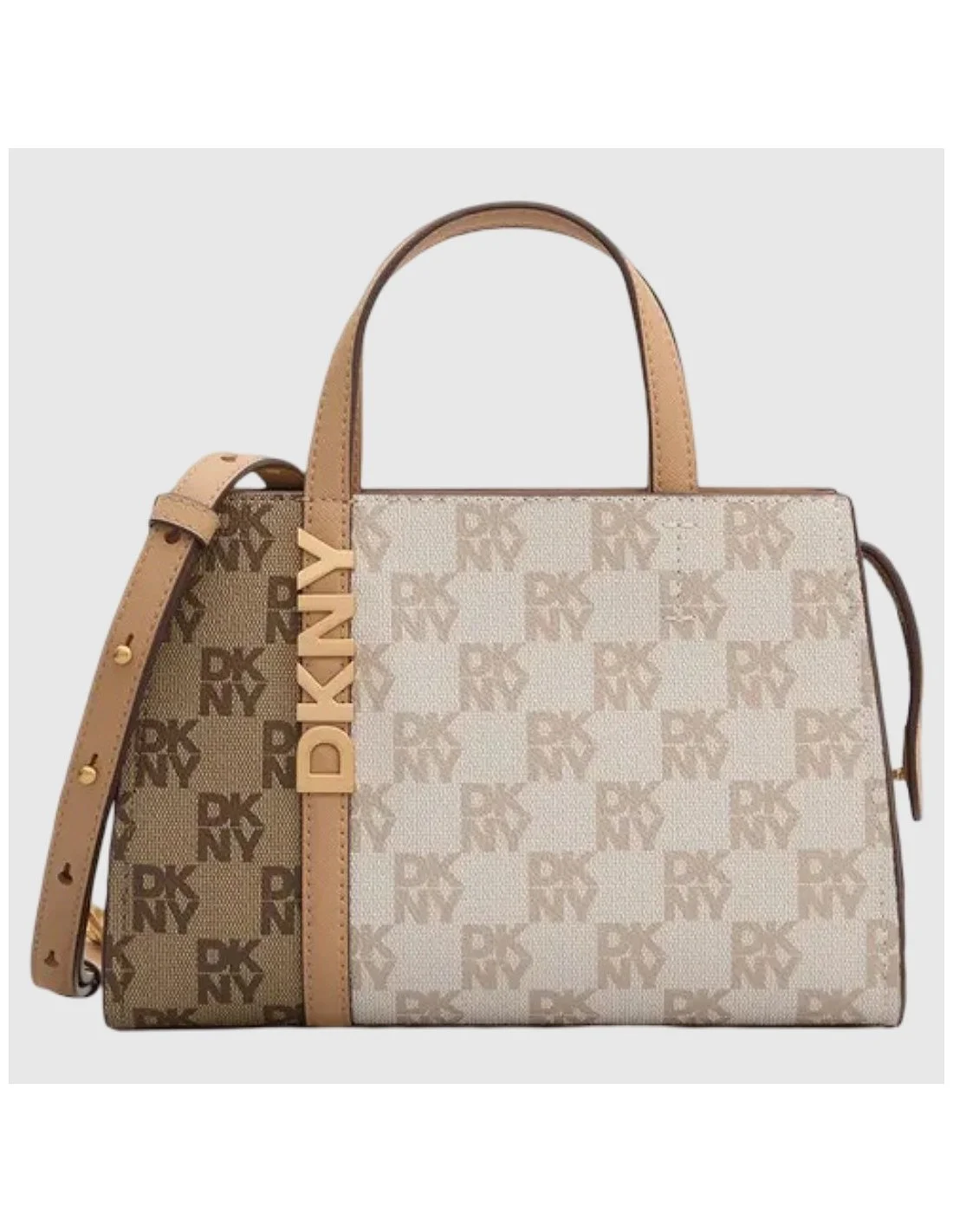 DKNY bolso satchel: diseño estructurado con monograma y doble asa para mujer