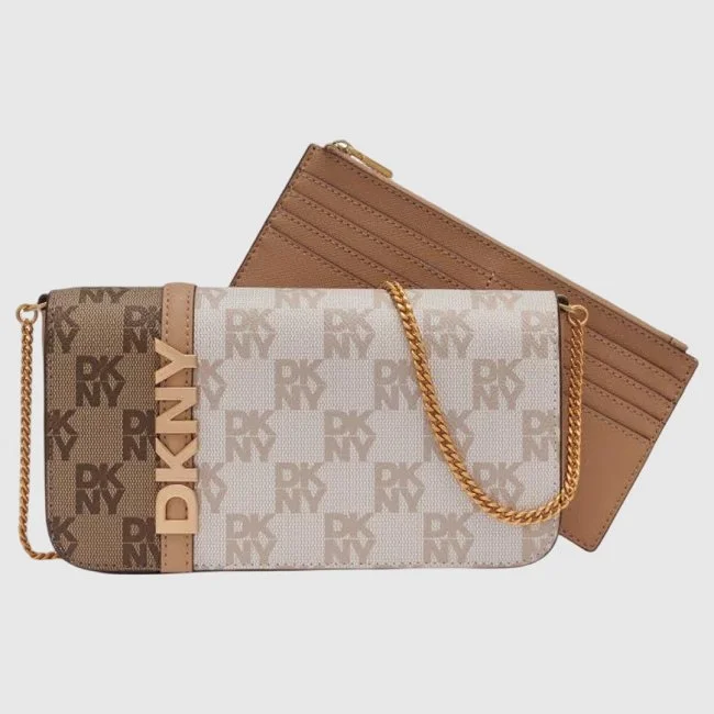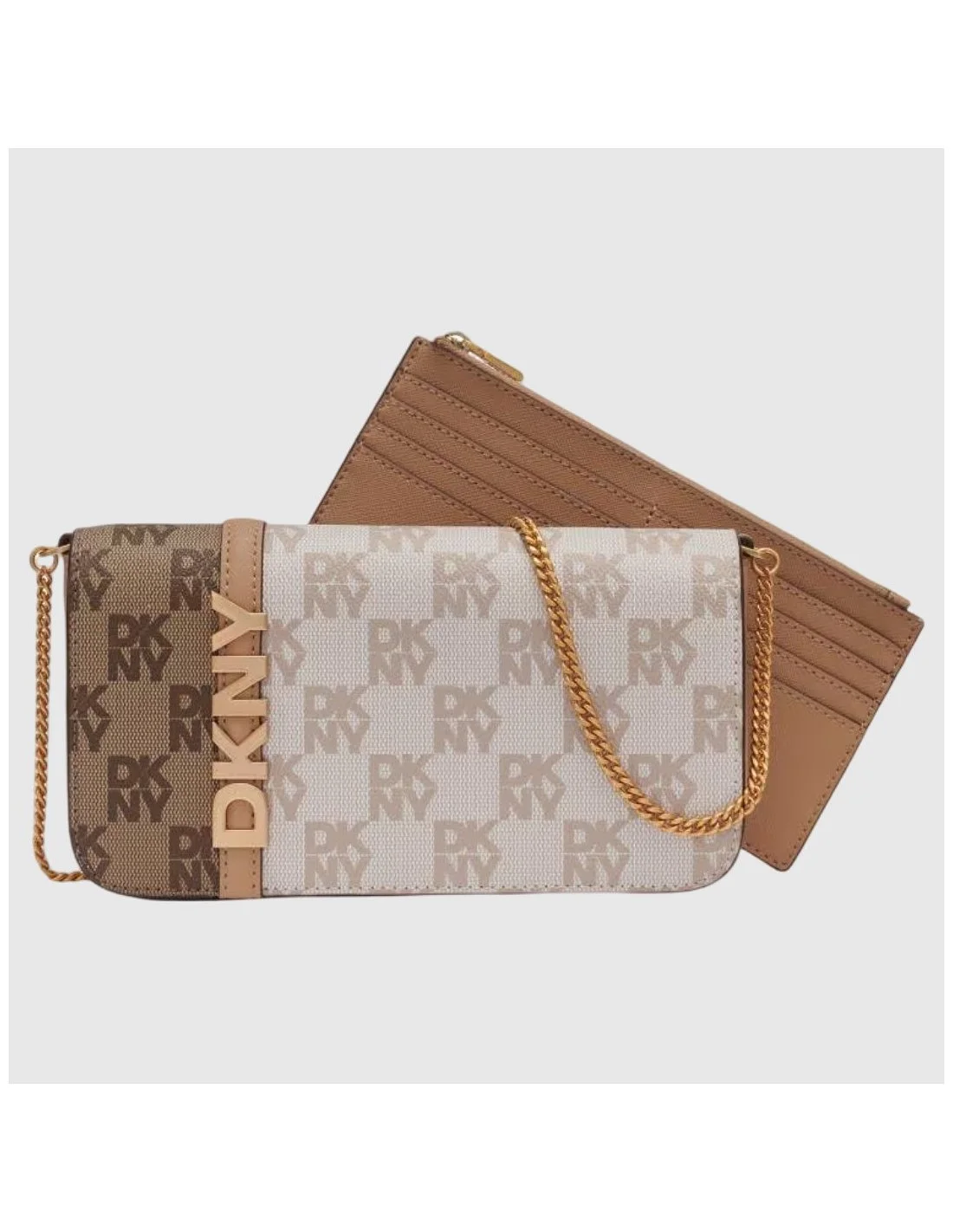 DKNY bolso bandolera: diseño compacto con logo en relieve para mujer