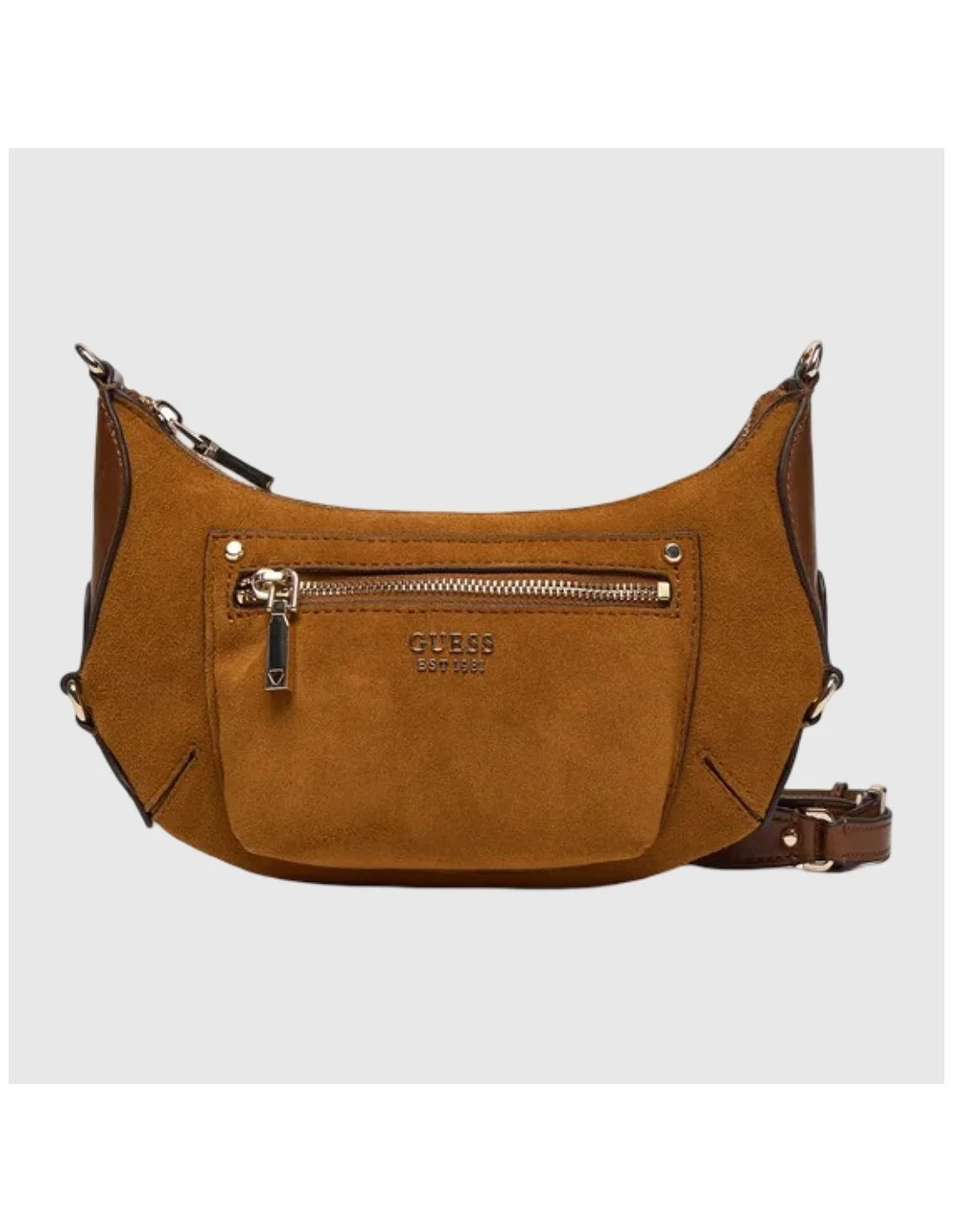El bolso de GUESS combina funcionalidad y estilo con un diseño compacto tipo bandolera. Confeccionado en material efecto ante y detalles en acabado liso, incorpora un bolsillo frontal con cremallera y el logotipo grabado en metal. Su correa ajustable permite llevarlo al hombro o cruzado, ideal para el uso diario con un toque sofisticado y moderno.