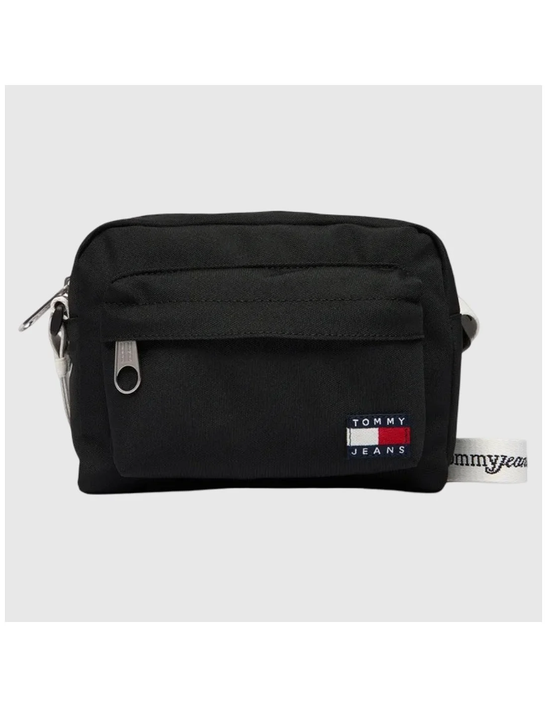 Bolso Tommy Hilfiger de formato compacto y diseño urbano, ideal para el uso diario. Cuenta con compartimento principal con cierre de cremallera y bolsillo frontal adicional que facilita la organización de los esenciales. Incorpora correa ajustable con logotipo integrado para llevarlo cómodamente al hombro o cruzado. El distintivo emblema frontal aporta un acabado icónico y moderno, convirtiéndolo en un complemento práctico y versátil para looks casuales y contemporáneos.
