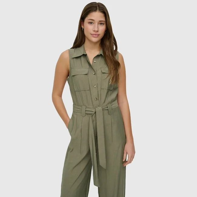 El mono largo Only para mujer presenta un diseño sin mangas con silueta fluida y estilo utilitario. Su estructura ligera y corte amplio aportan comodidad y un look actual adaptable a diferentes ocasiones.
