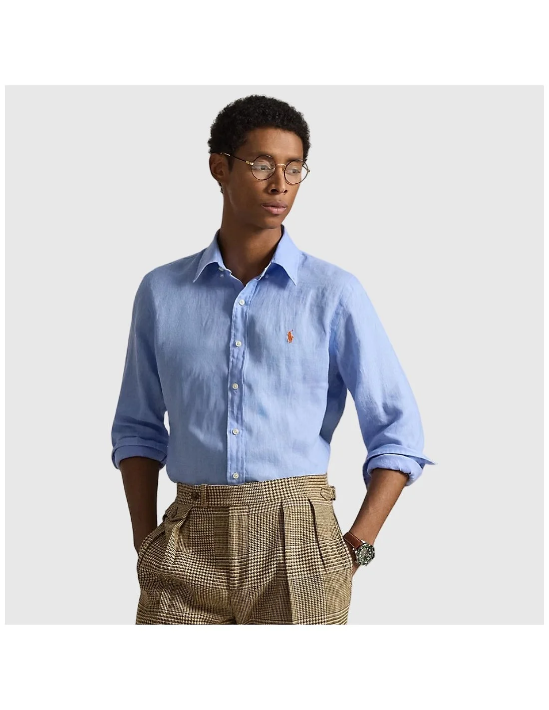 Camisa Ralph Lauren confeccionada en tejido de lino ligero y transpirable. Presenta corte clásico con cuello abotonado, cierre frontal con botones y puños ajustables. Incorpora el icónico logo bordado en el pecho, aportando un toque distintivo y elegante. Una prenda versátil y atemporal, ideal para looks casuales o más formales.