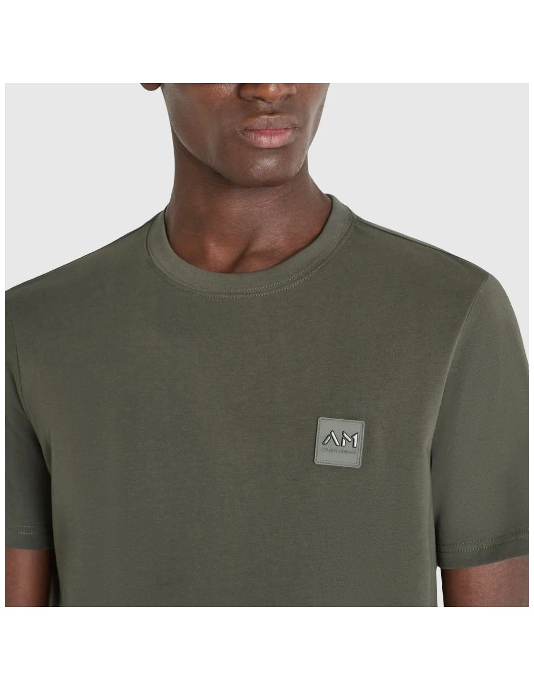 Camiseta Antony Morato de manga corta con corte regular y cuello redondo. Presenta un diseño minimalista realzado con un parche con el logotipo AM en relieve en el pecho. Confeccionada en algodón suave, es una prenda versátil y cómoda, ideal para un look casual moderno.