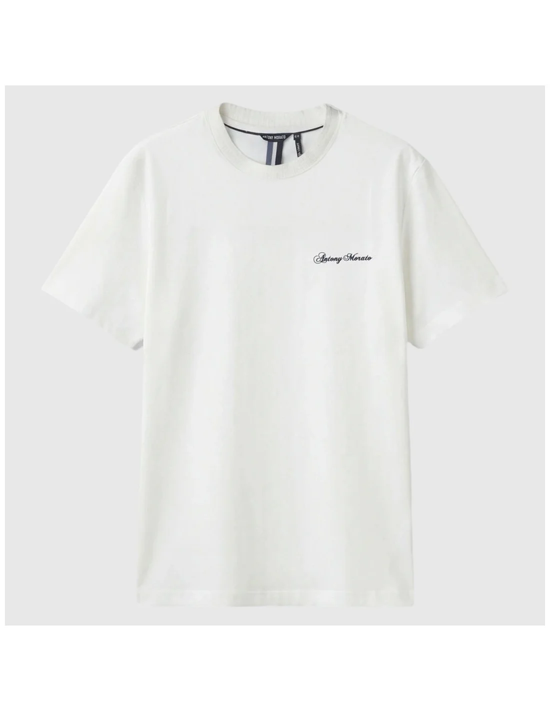La camiseta Antony Morato ofrece un diseño minimalista con corte recto y cuello redondo. Confeccionada en algodón suave, destaca por su pequeño bordado frontal con el nombre de la marca. Su estilo versátil la convierte en una prenda ideal para looks casuales o combinaciones más refinadas.