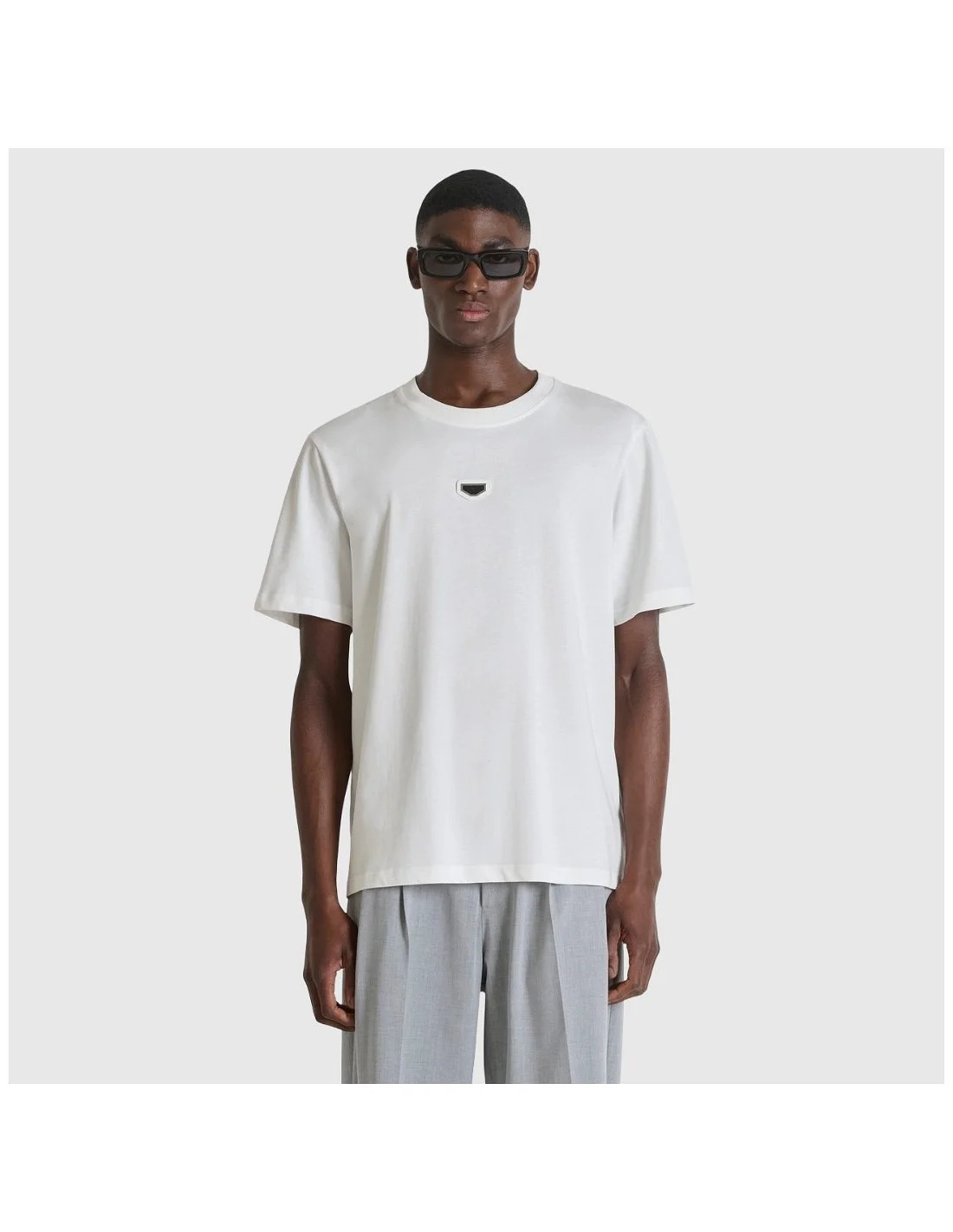 La camiseta Antony Morato presenta un diseño moderno de corte recto con cuello redondo. Confeccionada en algodón de tacto suave, incluye un distintivo logotipo metálico en el pecho que le da un toque sofisticado. Ideal para looks urbanos o combinaciones casuales con estilo.