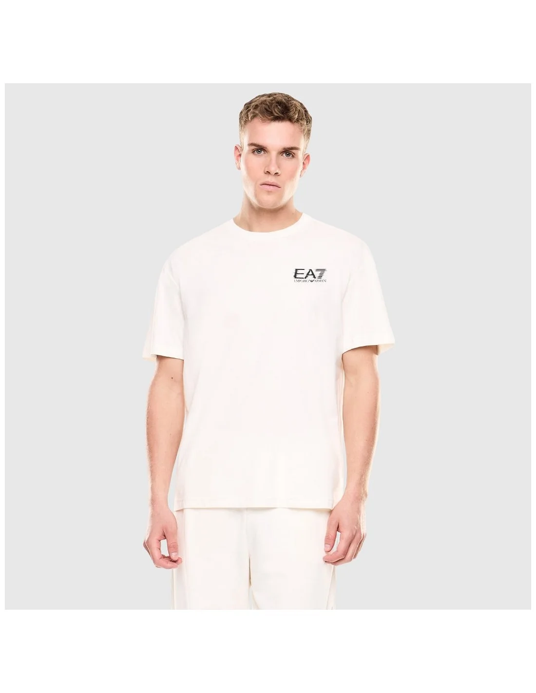 Camiseta de hombre Armani con diseño de corte clásico. Presenta el logotipo de la marca en el pecho y una versión ampliada y estilizada del mismo en la parte trasera, acompañado de coordenadas y detalles gráficos. Ideal para un look urbano y moderno.