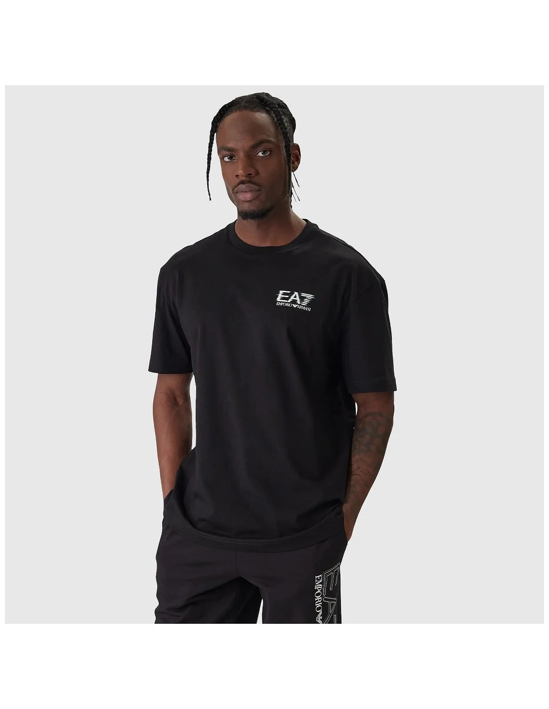 Camiseta de hombre Armani con diseño de corte clásico. Presenta el logotipo de la marca en el pecho y una versión ampliada y estilizada del mismo en la parte trasera, acompañado de coordenadas y detalles gráficos. Ideal para un look urbano y moderno.