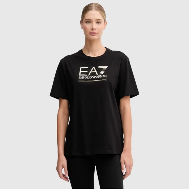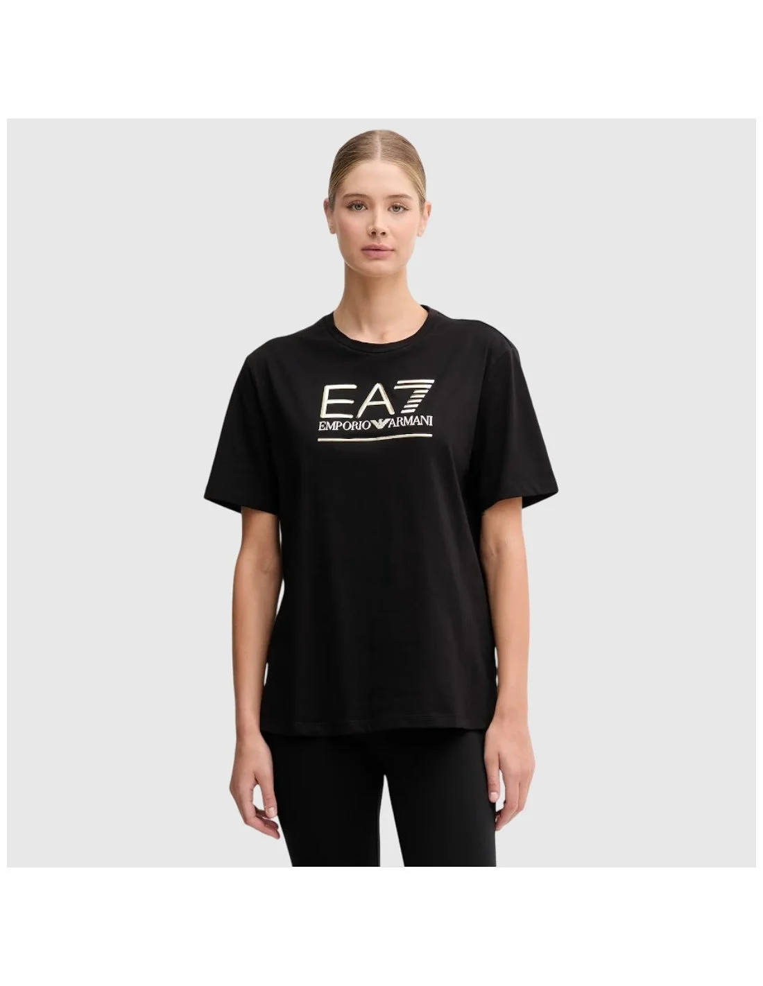 La camiseta EA7 Emporio Armani para mujer es una prenda casual con un diseño relajado y actual. Fabricada en algodón suave, ofrece un ajuste holgado que prioriza la comodidad. El logotipo EA7 metalizado en el pecho aporta un toque llamativo y distintivo. Ideal para looks urbanos o de tiempo libre con un aire sofisticado.