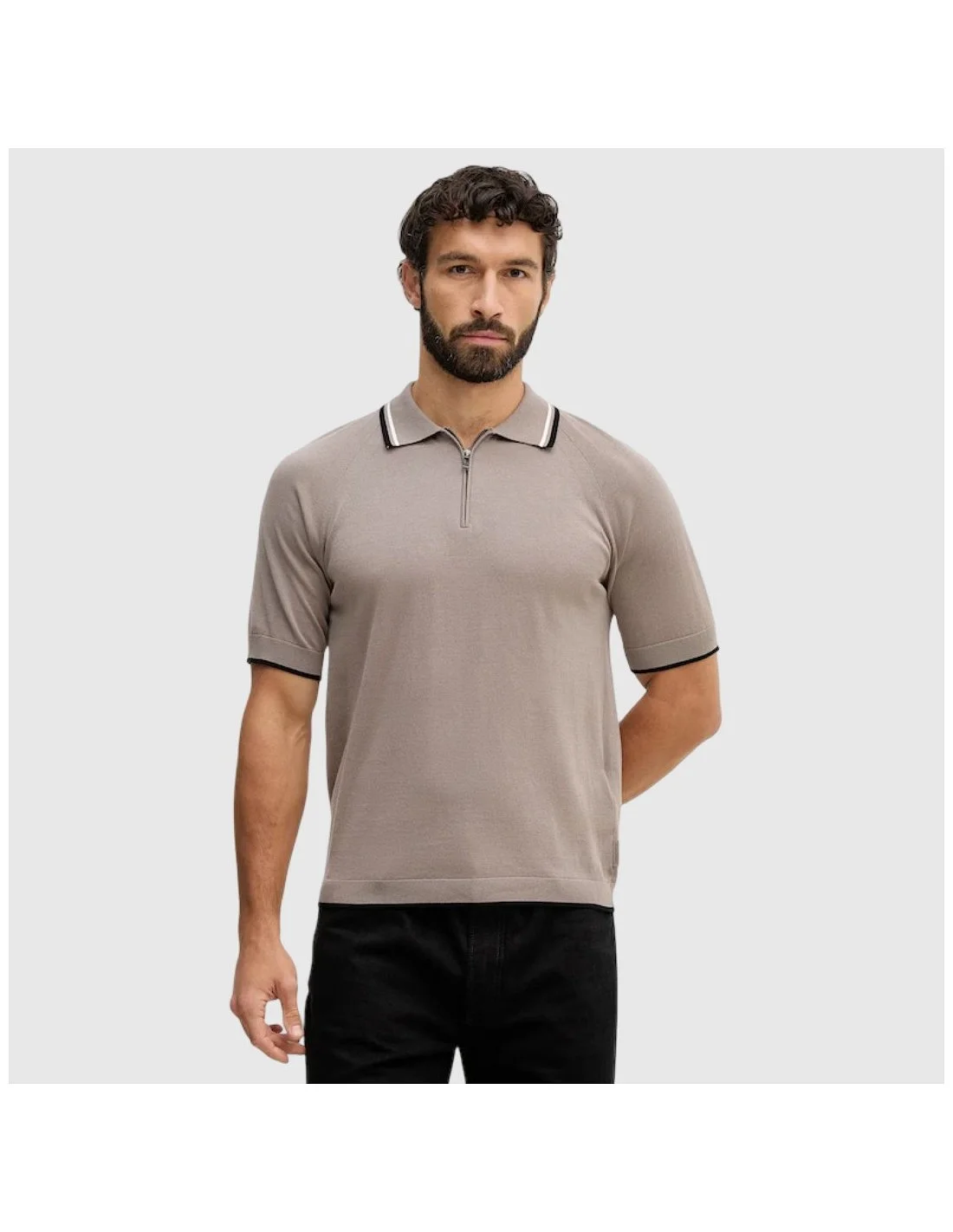Polo Armani Exchange para hombre de estilo casual con inspiración contemporánea. Presenta cuello clásico con cierre frontal de media cremallera y manga corta que aporta comodidad para el uso diario. El diseño incorpora acabados acanalados en el cuello y las mangas con líneas en contraste que añaden un detalle distintivo. Su silueta de ajuste regular ofrece una caída natural, ideal para looks urbanos y versátiles.