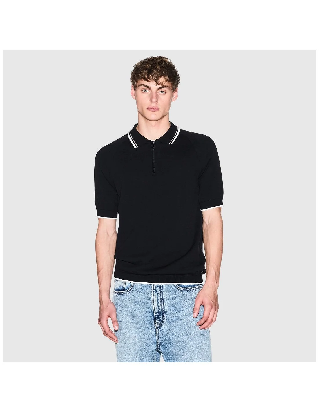Polo Armani Exchange para hombre de estilo casual con inspiración contemporánea. Presenta cuello clásico con cierre frontal de media cremallera y manga corta que aporta comodidad para el uso diario. El diseño incorpora acabados acanalados en el cuello y las mangas con líneas en contraste que añaden un detalle distintivo. Su silueta de ajuste regular ofrece una caída natural, ideal para looks urbanos y versátiles.