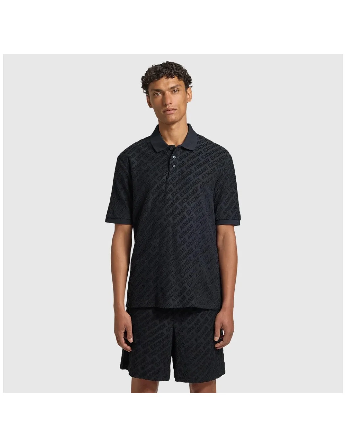 Armani Exchange polo jacquard: tejido texturizado y logo integral para hombre