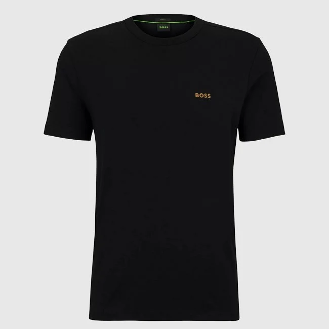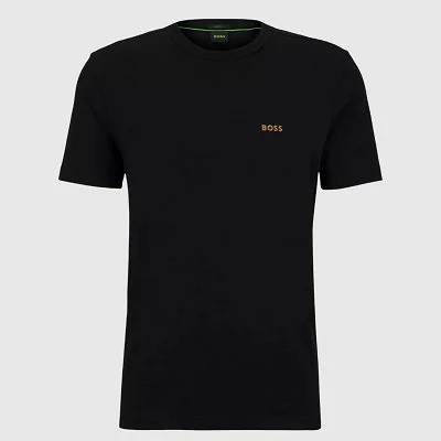 Camiseta BOSS para hombre de manga corta y corte regular, confeccionada en suave algodón elástico para mayor comodidad. Presenta cuello redondo clásico y un pequeño logotipo de la marca en el pecho, aportando un detalle distintivo y elegante. Ideal para looks casuales y versátiles.