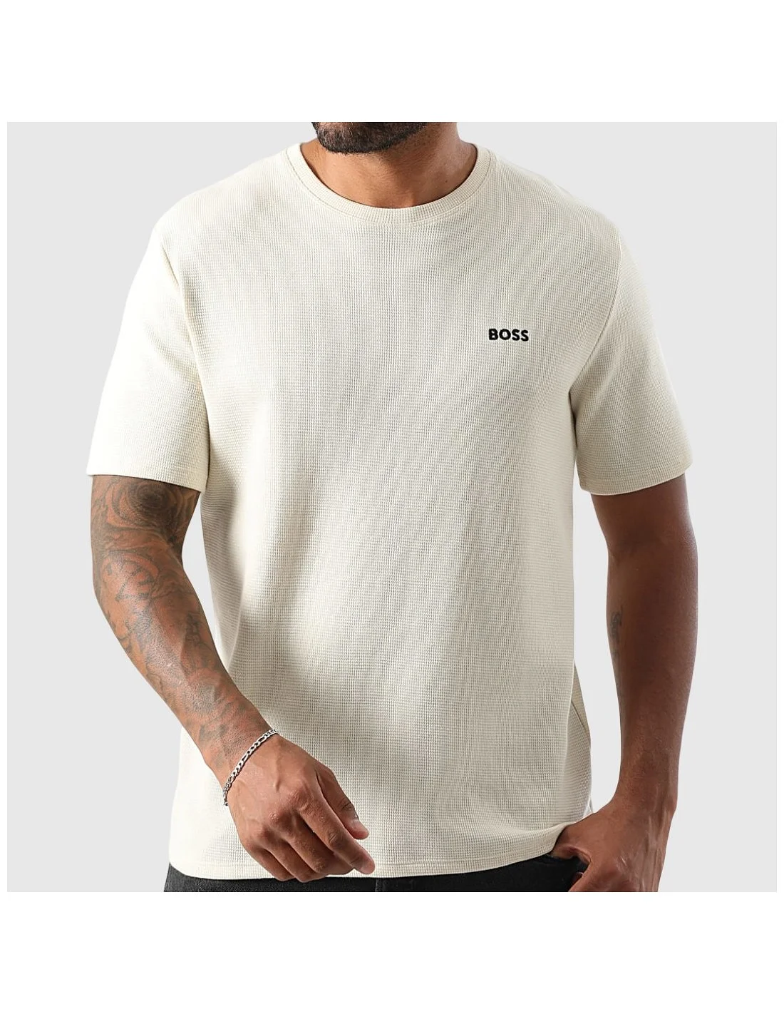 La camiseta BOSS para hombre destaca por su diseño minimalista y textura acanalada que aporta un sutil relieve visual. Confeccionada en algodón de alta calidad, garantiza comodidad y transpirabilidad durante todo el día. Presenta un corte regular y cuello redondo, acompañado de un pequeño logotipo bordado en el pecho que refuerza su identidad de marca. Ideal para un look casual y moderno.