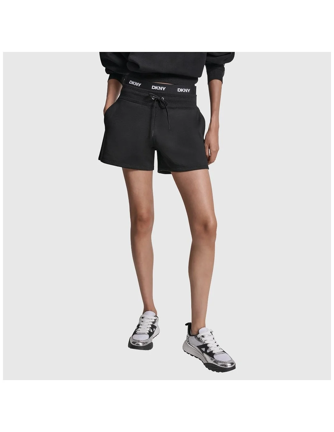 Pantalón corto DKNY de estilo deportivo y silueta cómoda, diseñado para un look casual y actual. Cuenta con cintura elástica con logotipo DKNY integrado y cordón ajustable que permite un ajuste personalizado. Incorpora bolsillos laterales funcionales y un corte recto que aporta libertad de movimiento y confort durante todo el día. Una prenda versátil y práctica, ideal para outfits relajados con un toque urbano característico de la marca.