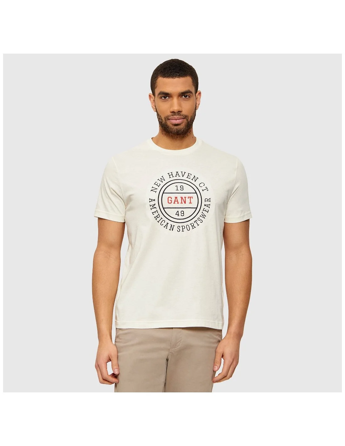 Camiseta Gant de corte regular y estilo casual, confeccionada en tejido suave y ligero que garantiza comodidad durante todo el día. Presenta cuello redondo con acabado acanalado y mangas cortas para un ajuste clásico. Destaca por su gráfico frontal con logotipo y detalles tipográficos inspirados en la herencia universitaria de la marca, aportando un toque distintivo y deportivo. Una prenda versátil ideal para completar looks informales con personalidad.