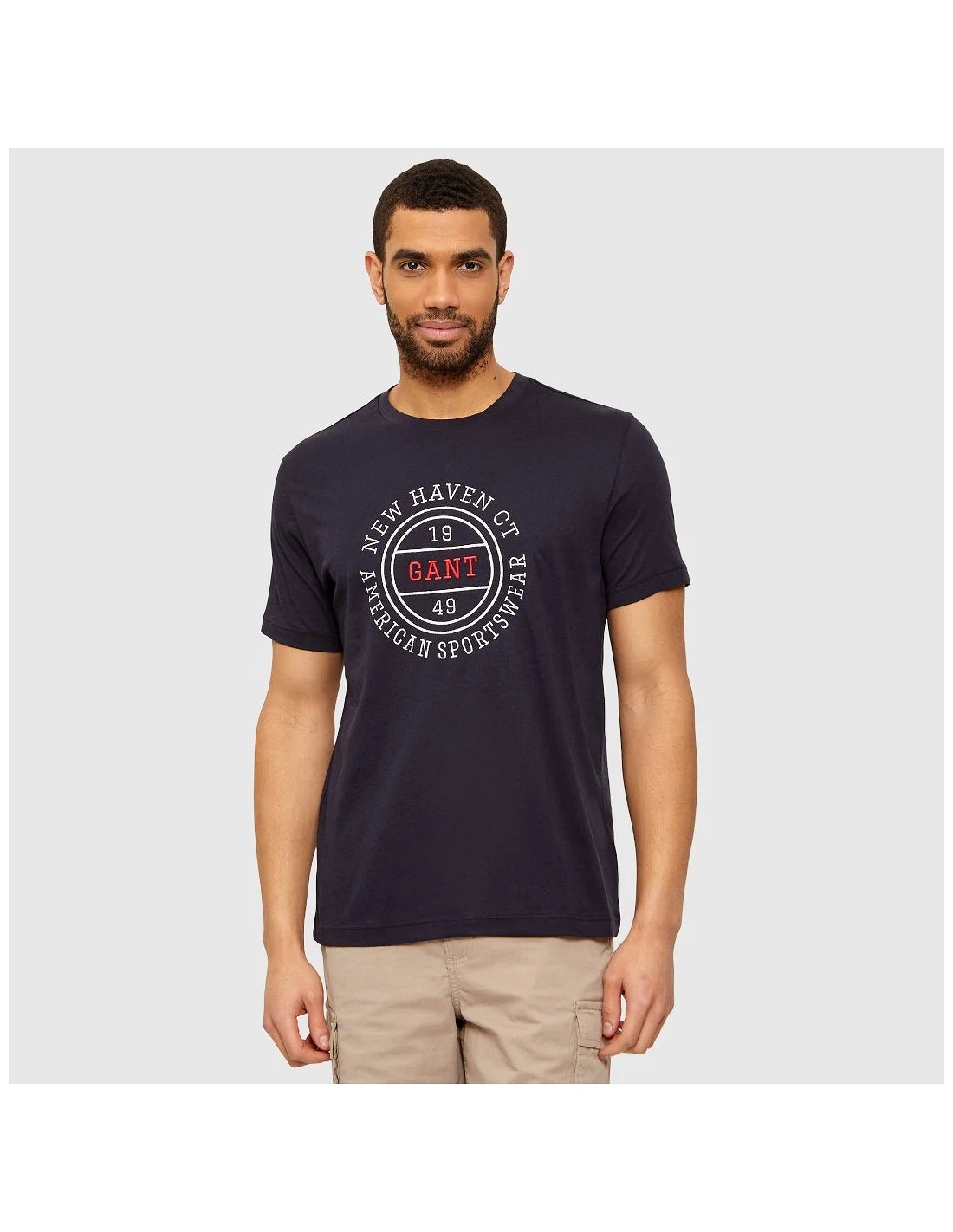 Camiseta Gant de corte regular y estilo casual, confeccionada en tejido suave y ligero que garantiza comodidad durante todo el día. Presenta cuello redondo con acabado acanalado y mangas cortas para un ajuste clásico. Destaca por su gráfico frontal con logotipo y detalles tipográficos inspirados en la herencia universitaria de la marca, aportando un toque distintivo y deportivo. Una prenda versátil ideal para completar looks informales con personalidad.