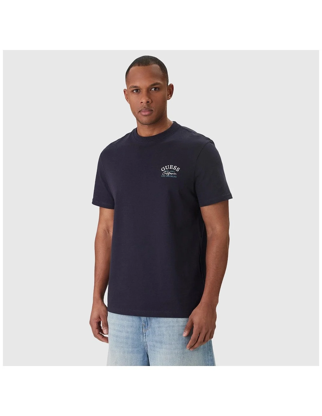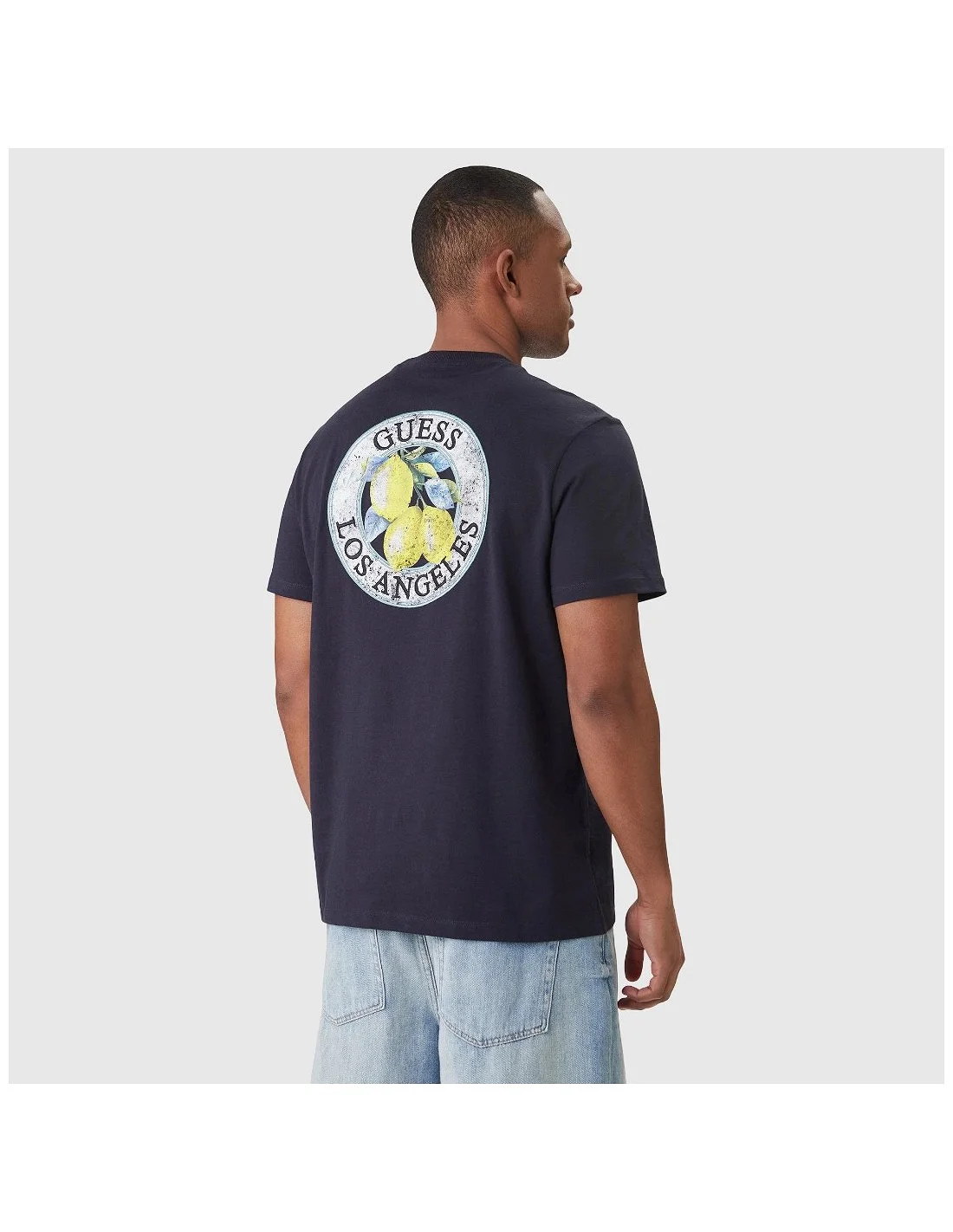 El diseño incluye cuello redondo y manga corta, junto con un pequeño logotipo en la parte frontal y un estampado gráfico en la espalda que añade un toque distintivo a esta camiseta Guess.