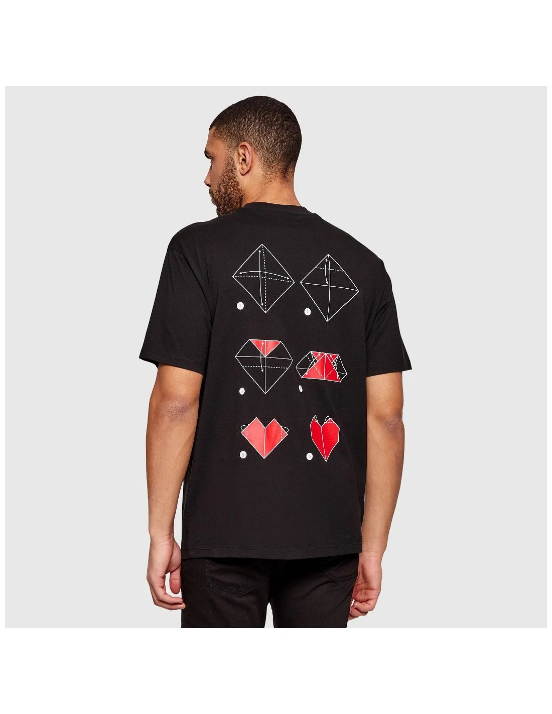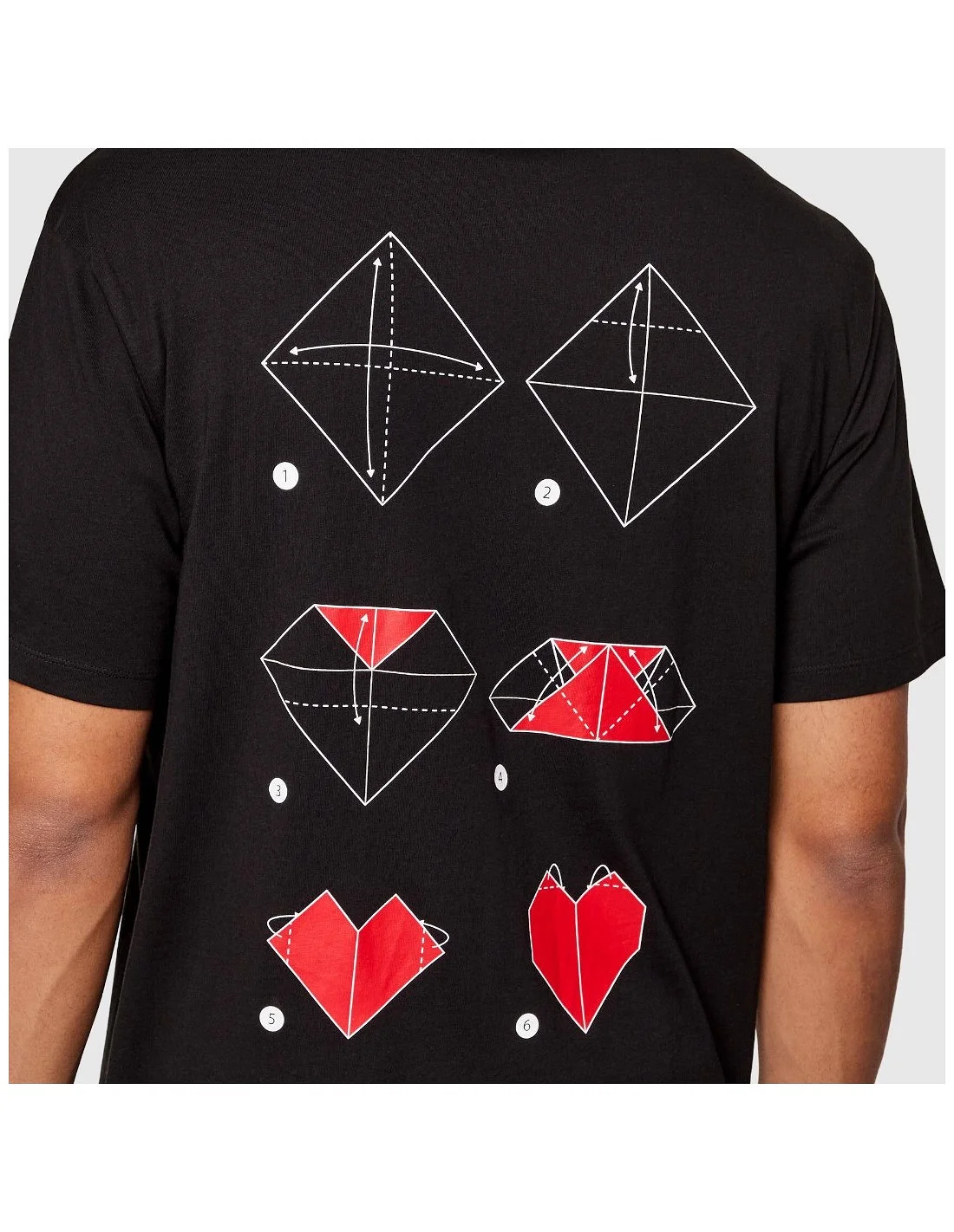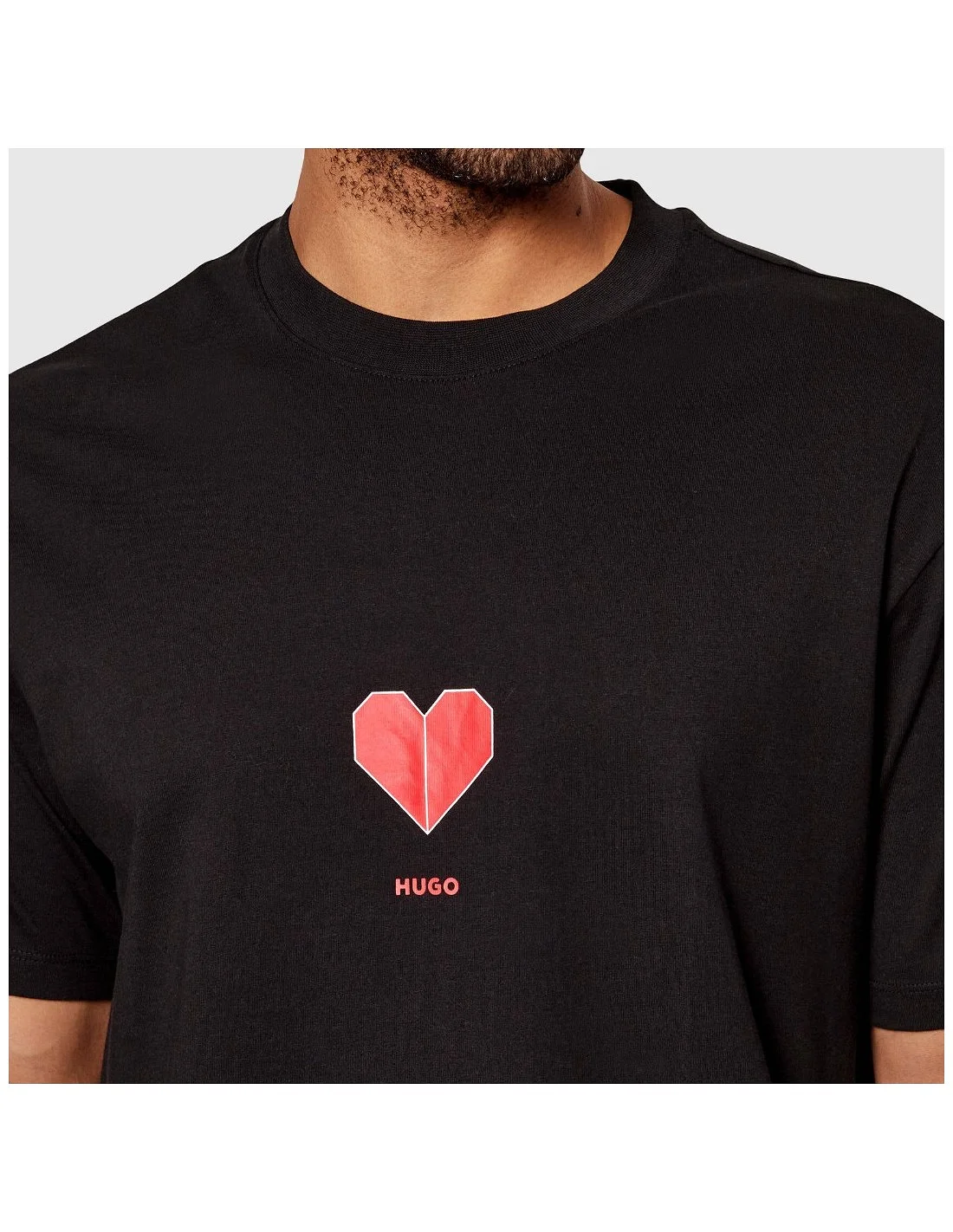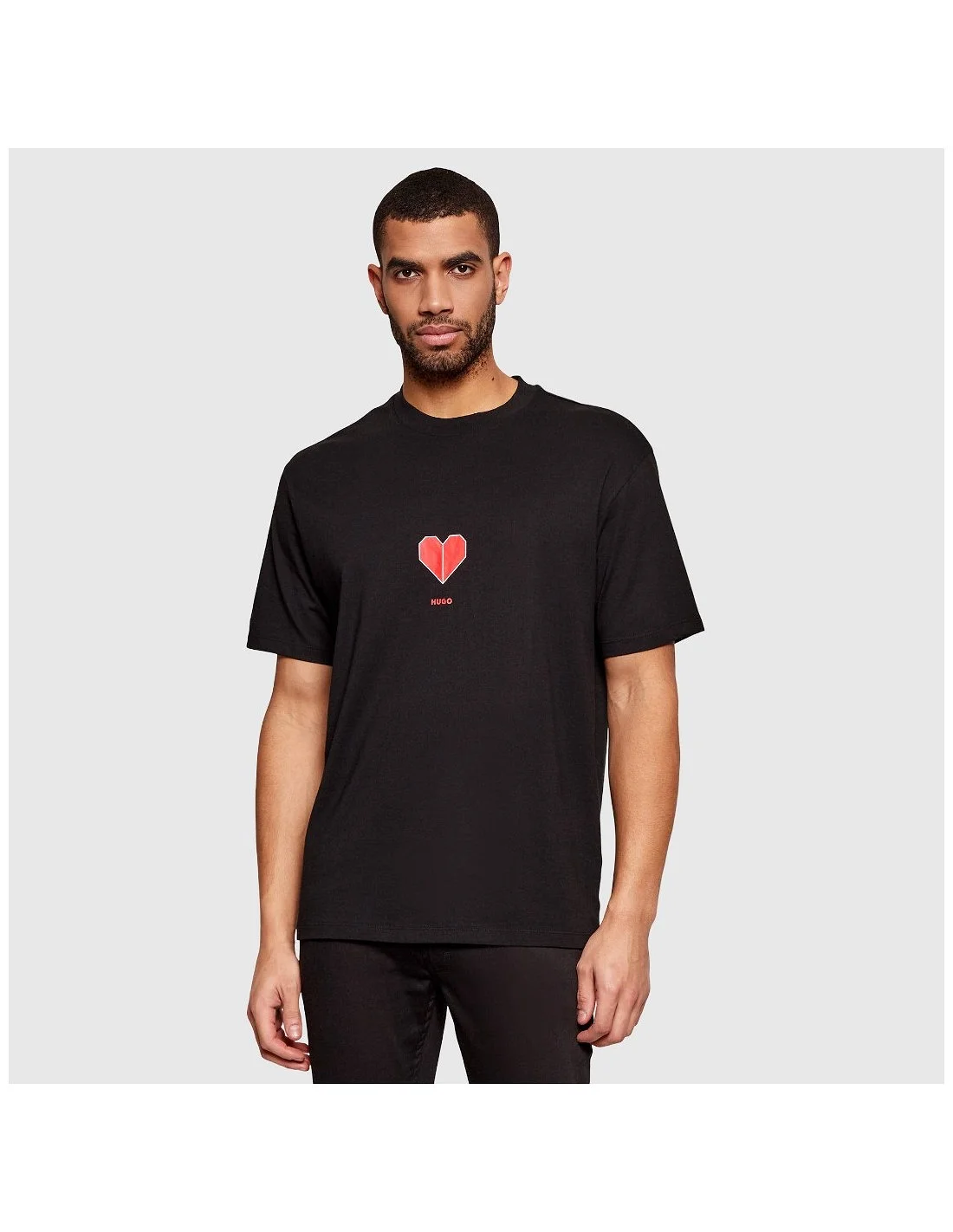 Camiseta de hombre HUGO de corte recto con cuello redondo. Presenta en el frente un gráfico de corazón estilo origami acompañado del logotipo de la marca. En la parte trasera, luce un diseño que muestra paso a paso el proceso de plegado del corazón, aportando un toque creativo y original. Confeccionada en algodón para mayor comodidad.