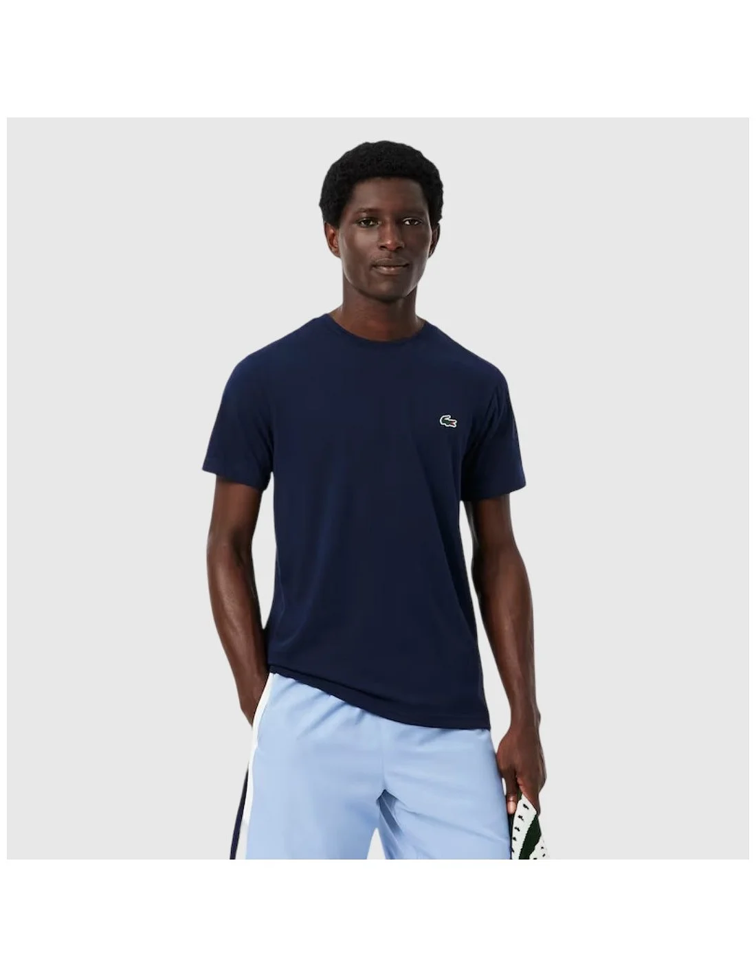 Camiseta Lacoste de corte clásico con cuello redondo y manga corta. Presenta el icónico logo del cocodrilo bordado en el pecho y un gran gráfico del mismo logotipo en la parte posterior, con efecto de puntos. Confeccionada en algodón para mayor confort y estilo casual.