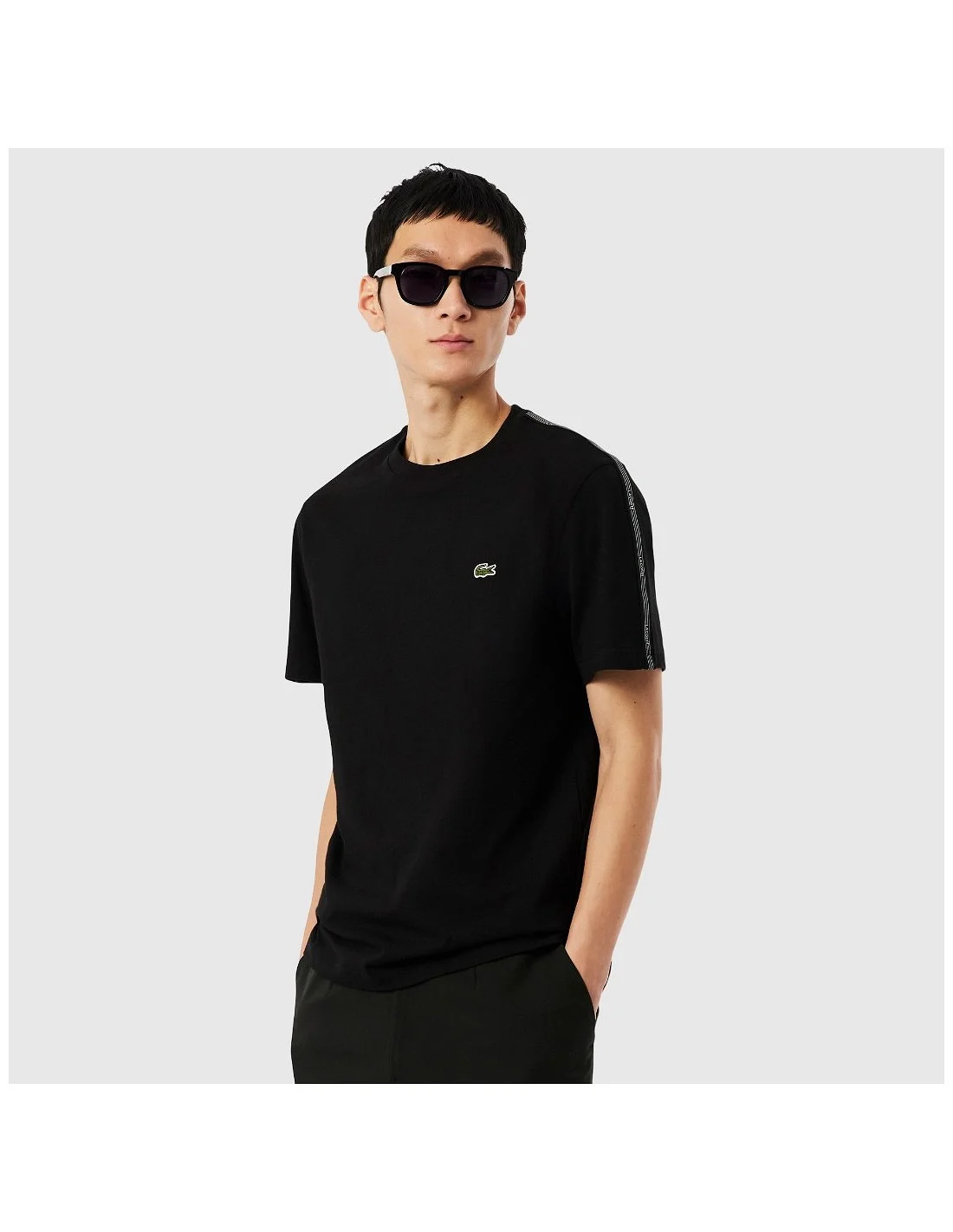 La camiseta Lacoste para hombre combina un diseño clásico con detalles deportivos. Confeccionada en algodón suave, presenta corte regular y cintas con el logo Lacoste a lo largo de las mangas. El icónico cocodrilo bordado en el pecho añade un toque distintivo. Ideal para un look casual con estilo urbano.