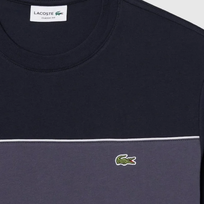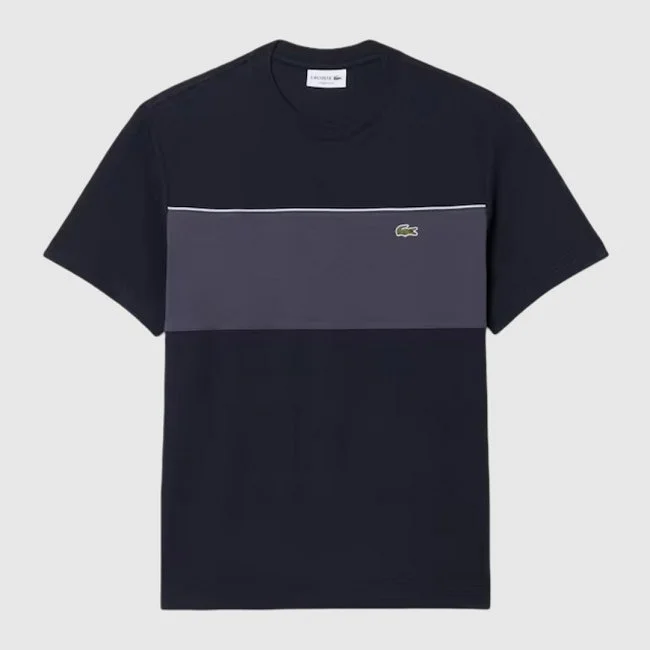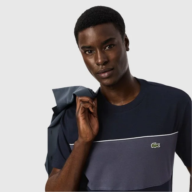 La camiseta Lacoste para hombre destaca por su diseño moderno con panel frontal contrastante y detalle de ribete superior. Confeccionada en tejido suave de punto, ofrece un ajuste regular que garantiza comodidad en el día a día. El icónico logo del cocodrilo bordado en el pecho añade un toque distintivo. Ideal para un estilo casual con personalidad.