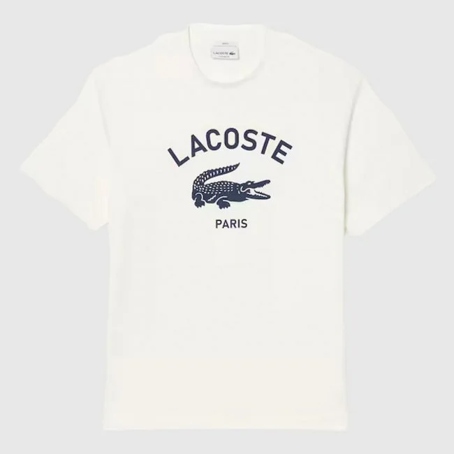 La camiseta con logo de Lacoste es una prenda casual ideal para un estilo urbano y relajado. De ajuste regular, presenta el icónico cocodrilo y la marca estampados en el pecho en tono sobre tono. Su estética limpia y contemporánea la convierte en una opción versátil para el día a día.