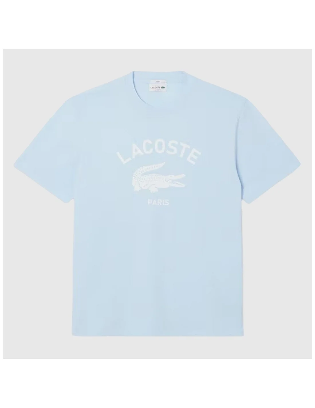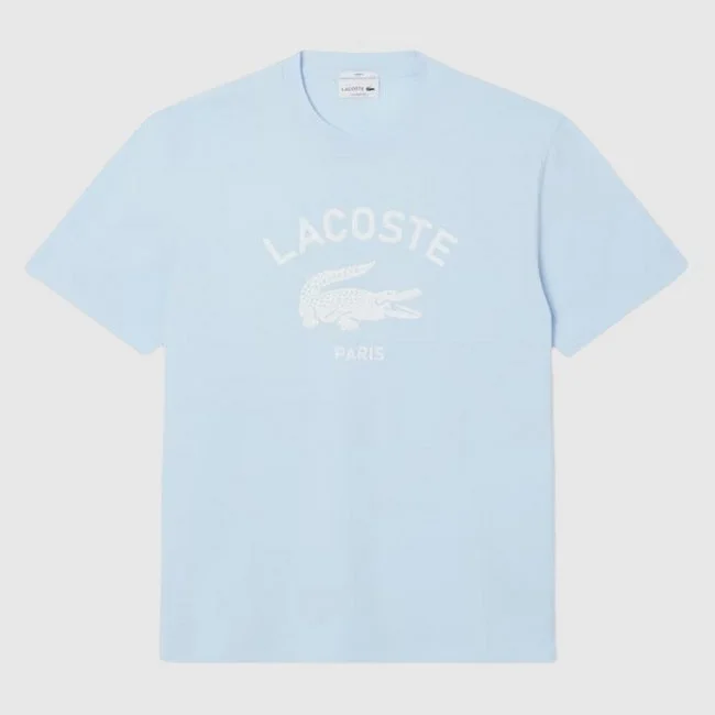 La camiseta con logo de Lacoste es una prenda casual ideal para un estilo urbano y relajado. De ajuste regular, presenta el icónico cocodrilo y la marca estampados en el pecho en tono sobre tono. Su estética limpia y contemporánea la convierte en una opción versátil para el día a día.