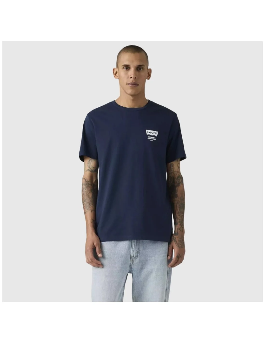 La camiseta Levi's en color azul marino destaca por su diseño gráfico en la espalda con un estampado de estilo retro tipo pizza y mensajes impresos. Confeccionada en algodón, ofrece un ajuste regular y cuello redondo clásico. El logo en el pecho aporta identidad de marca, mientras que el estampado trasero añade un toque urbano y original. Ideal para looks casuales con actitud.