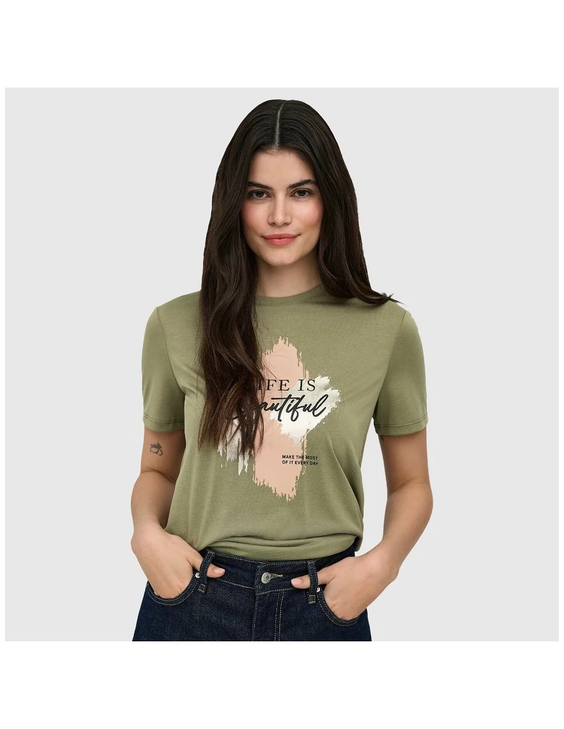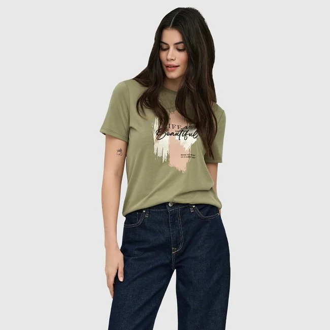 Fácil de combinar con jeans, faldas o pantalones, la camiseta Only se adapta a diferentes estilos. Disponible en España, ofrece equilibrio entre diseño femenino, comodidad y funcionalidad para el día a día.