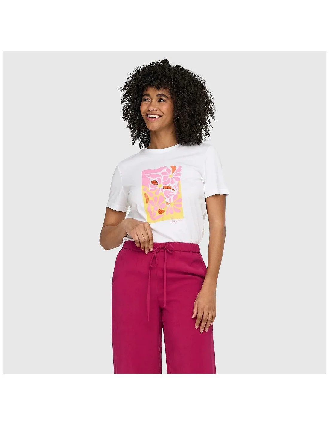 Camiseta ONLY de manga corta y corte recto, confeccionada en tejido suave y ligero para un uso cómodo diario. Presenta cuello redondo clásico y diseño frontal con estampado decorativo con detalles brillantes y texto gráfico, que aporta un toque original y femenino. Versátil y fácil de combinar, ideal para looks casuales con un punto distintivo.