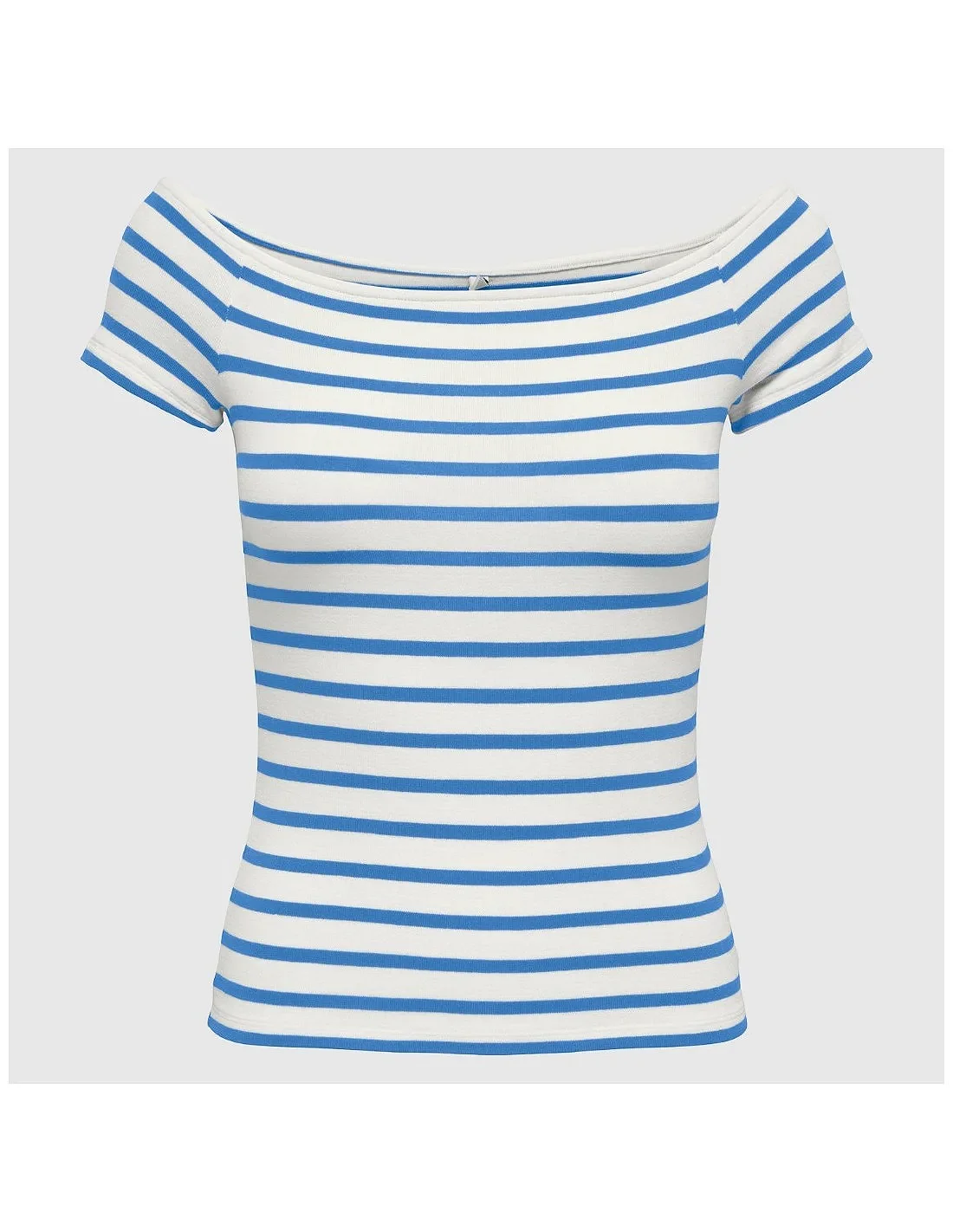 La camiseta Only para mujer destaca por su diseño femenino y moderno con escote tipo hombros descubiertos. Este modelo aporta un estilo fresco y actual ideal para los días más cálidos.