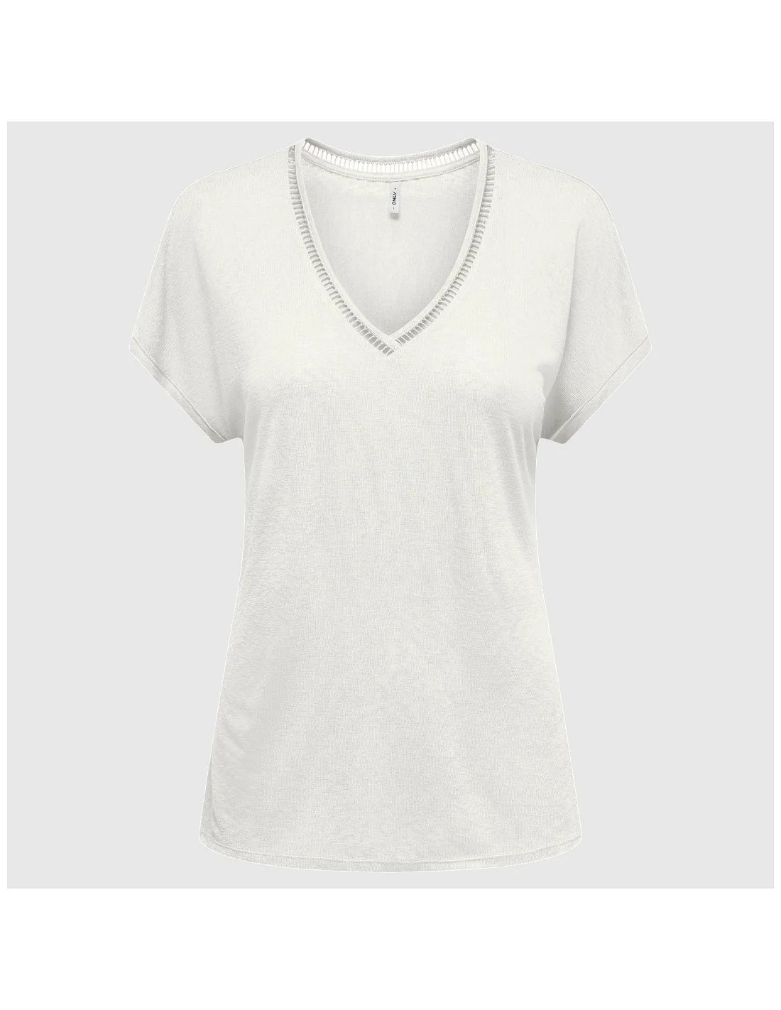 Only camiseta cuello pico: diseño fluido con detalle calado para mujer