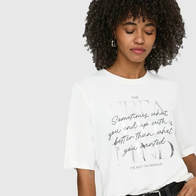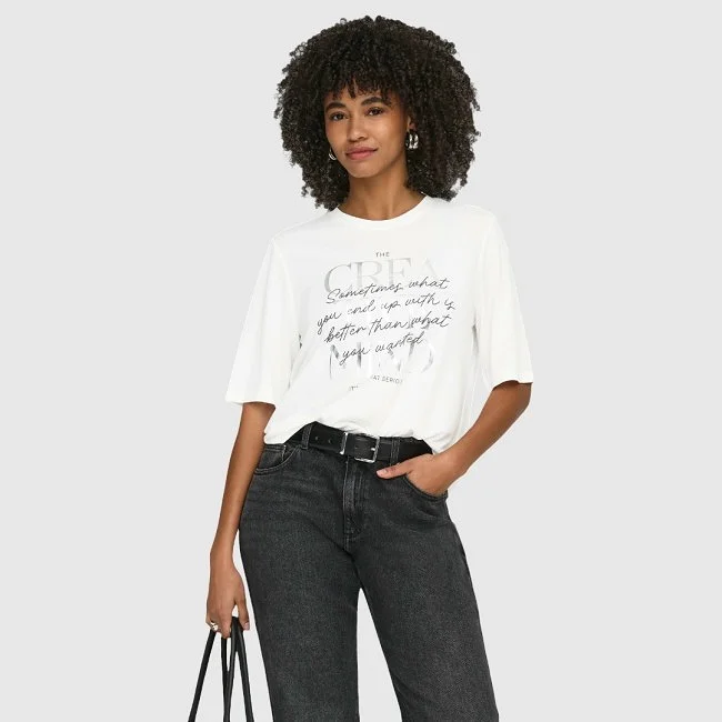 Only camiseta gráfica: algodón suave con mensaje frontal para mujer
