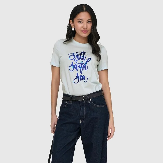 La camiseta Only para mujer presenta un diseño gráfico frontal con detalles decorativos que aportan un estilo casual y actual. Su corte regular y tejido ligero la convierten en una opción cómoda para el uso diario.