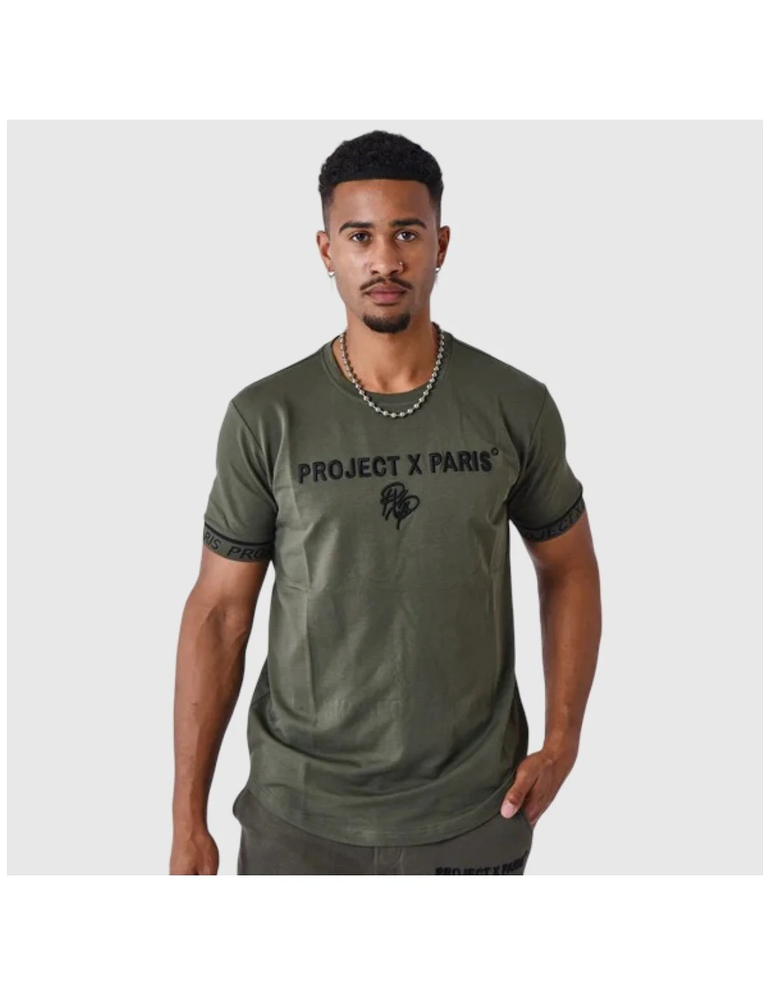 La camiseta de Project X Paris presenta un diseño moderno con logotipo bordado en el pecho y cinta con branding en las mangas, aportando un estilo urbano distintivo. Confeccionada en algodón, ofrece un ajuste entallado que resalta la silueta sin perder comodidad. Ideal para looks streetwear actuales con un toque sofisticado.