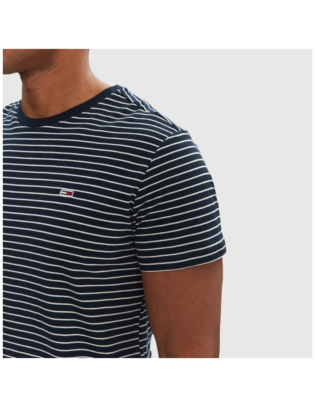 La camiseta de rayas para hombre de Tommy Hilfiger combina estilo y comodidad en un diseño atemporal. Confeccionada en algodón, presenta un ajuste regular y cuello redondo que se adapta con facilidad al uso diario. El patrón de rayas finas junto al icónico logo bordado en el pecho aporta un toque distintivo. Perfecta para un look casual con un aire moderno.