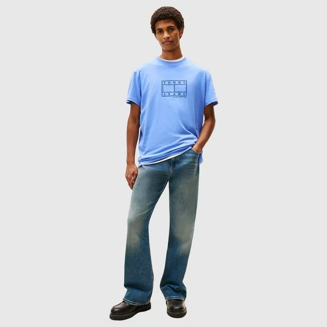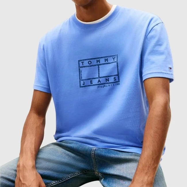 La camiseta Tommy Hilfiger para hombre presenta un diseño de corte recto con cuello redondo y manga corta, ideal para un estilo casual. Confeccionada en algodón orgánico, ofrece suavidad y transpirabilidad. El estampado frontal con el logo aporta un toque gráfico distintivo que eleva cualquier look relajado.