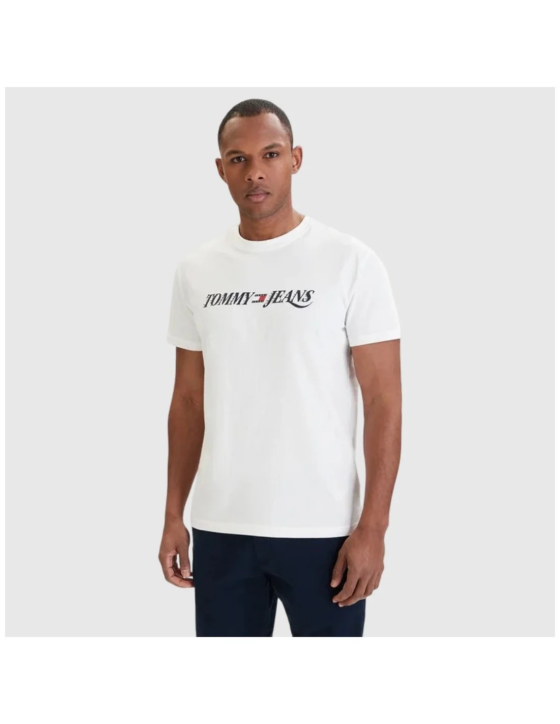 Una camiseta masculina cómoda y fácil de combinar, perfecta para crear outfits casuales con el estilo urbano característico de Tommy Jeans.