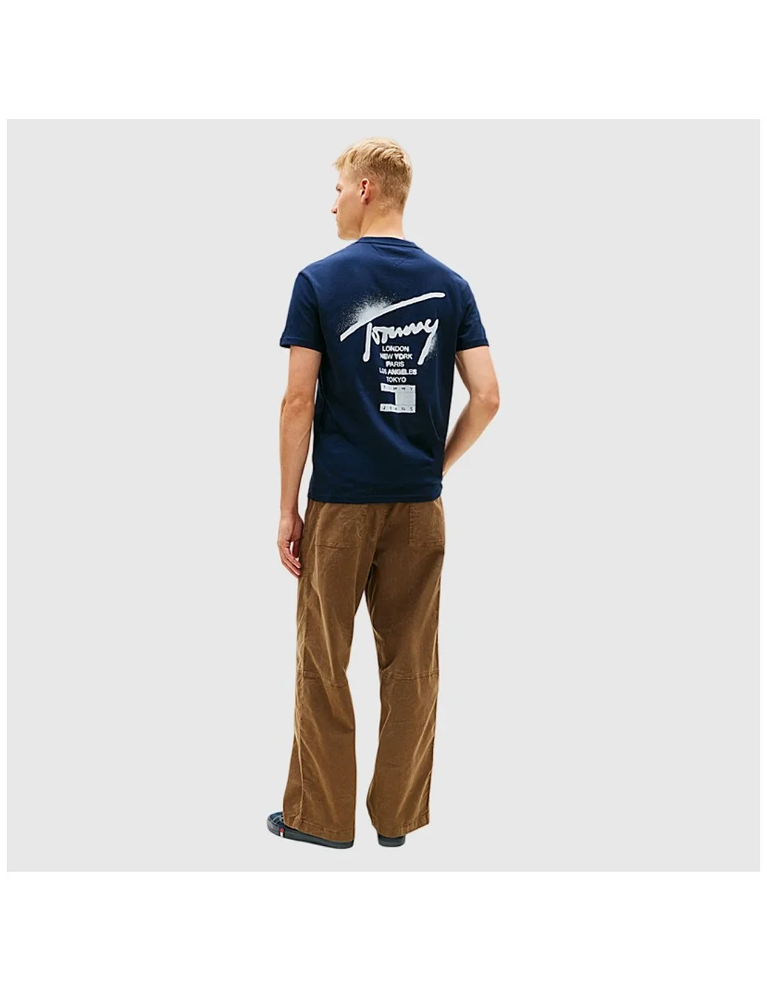 Camiseta Tommy Hilfiger de corte regular confeccionada en algodón suave. Diseño de manga corta con cuello redondo y gráfico estampado en pecho y espalda con detalle de logo y lettering. Una prenda cómoda y actual, perfecta para completar looks casuales con personalidad.