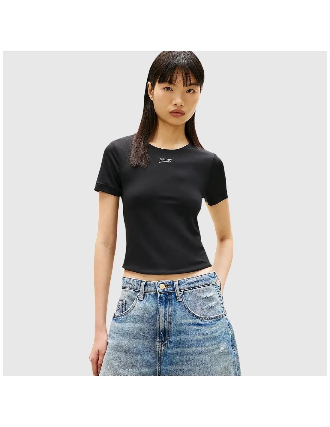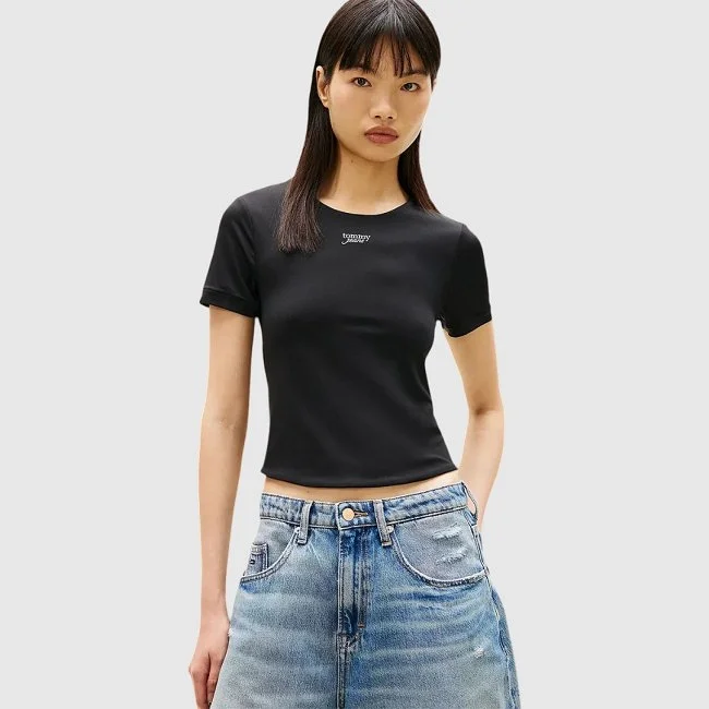 Tommy Hilfiger camiseta cropped: ajuste ceñido con logo minimalista para mujer