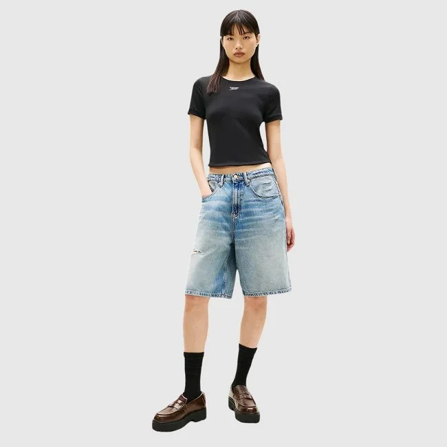 Combínala con jeans de tiro alto, faldas o pantalones wide leg para un look actual. La camiseta Tommy Hilfiger cropped es una opción funcional que une estilo minimalista y confort diario.