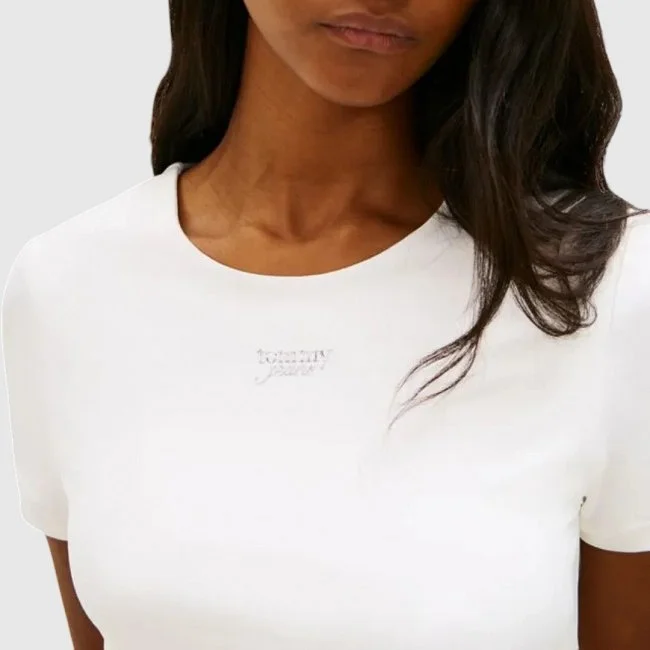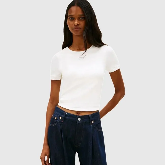 Tommy Hilfiger camiseta cropped: ajuste ceñido con logo minimalista para mujer