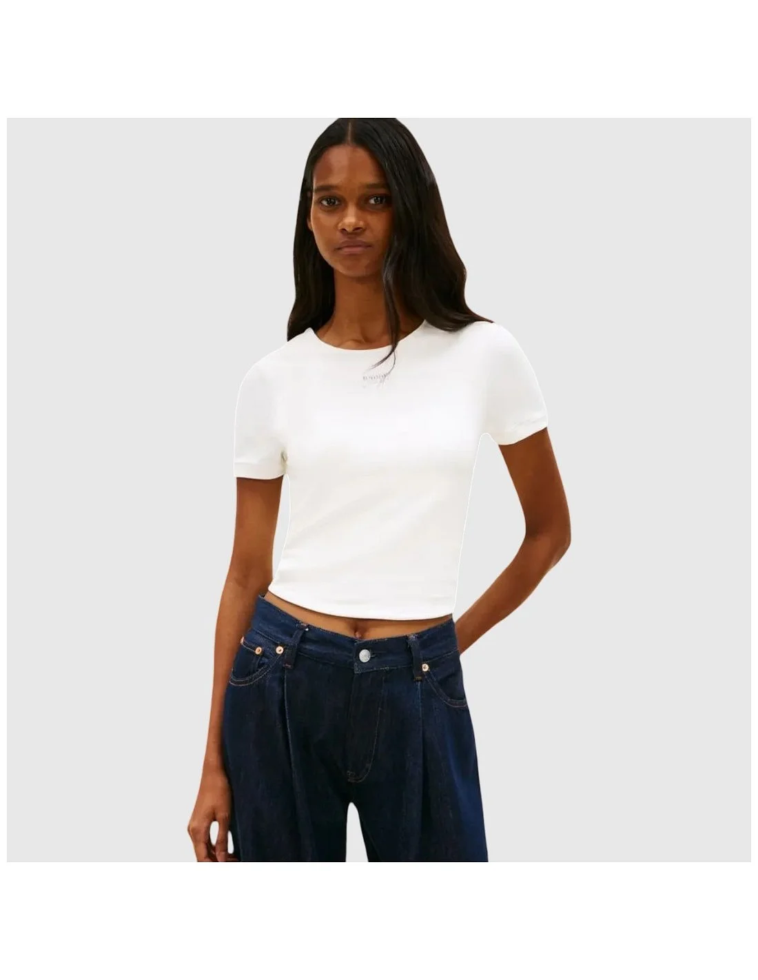 Diseñada para outfits casuales y contemporáneos, destaca por su corte corto y líneas limpias. Las mangas cortas y el cuello redondo aportan equilibrio, mientras el fit entallado estiliza la figura con naturalidad.